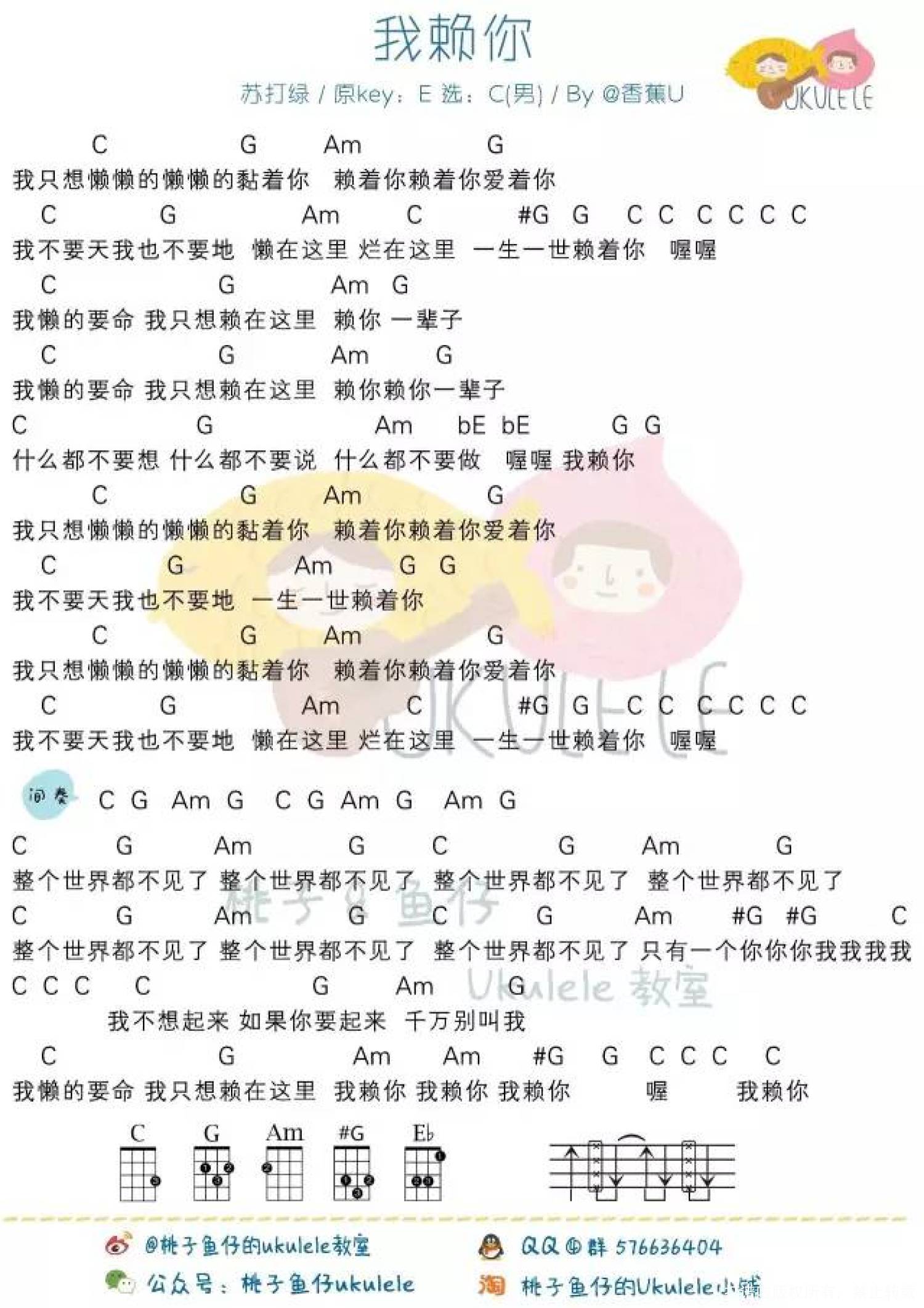曲谱介绍: 苏打绿《我懒你》_C调尤克里里谱_男生版