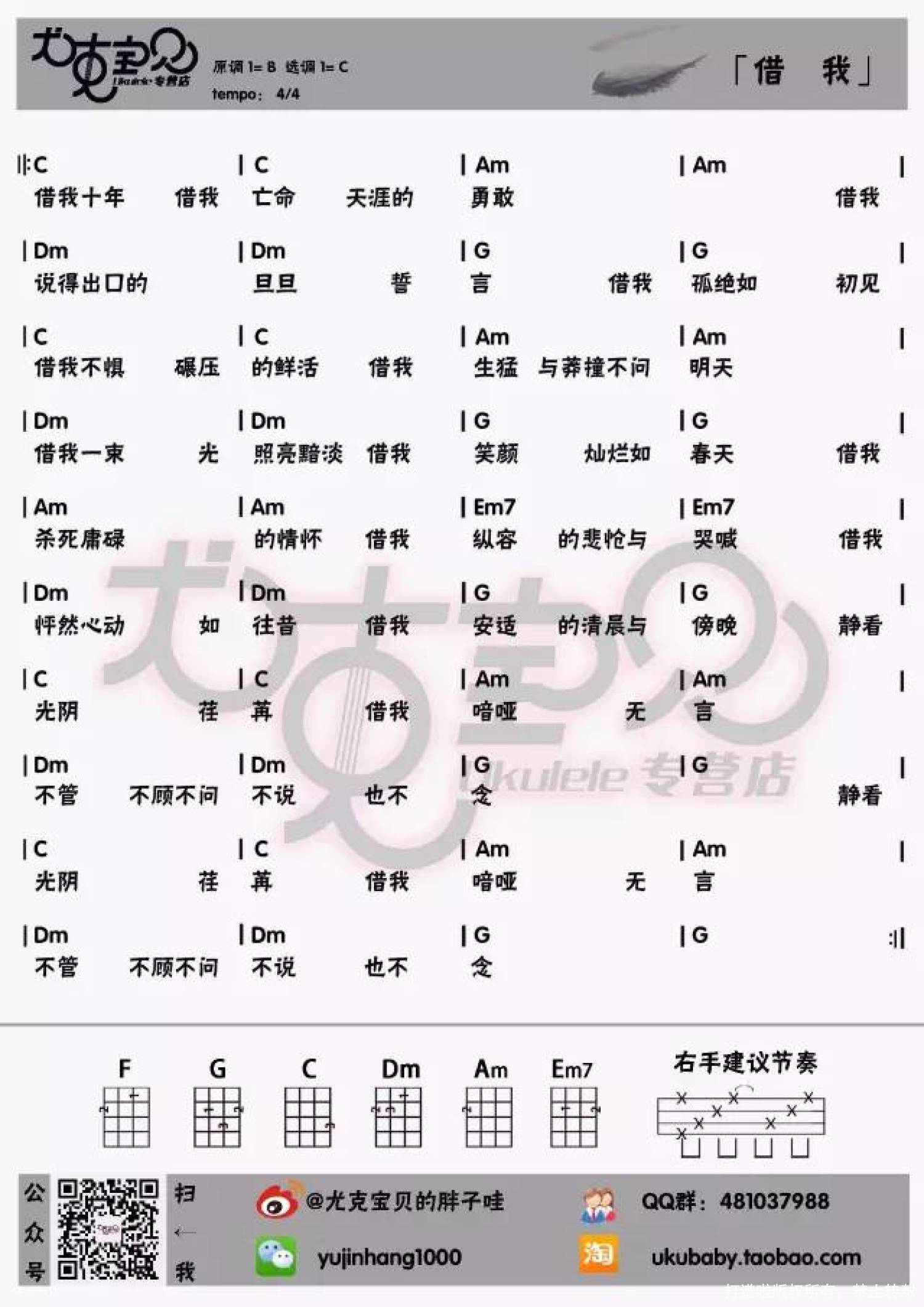 曲谱介绍: 谢春花《借我》_C调尤克里里谱