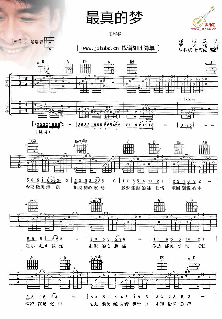 最真的梦吉他谱 - 周华健 - D调吉他弹唱谱