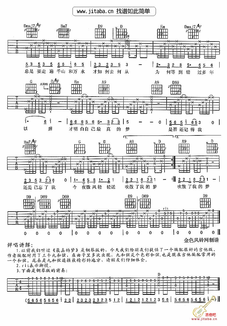 当前位置:琴谱网>吉他弹唱>最真的梦
