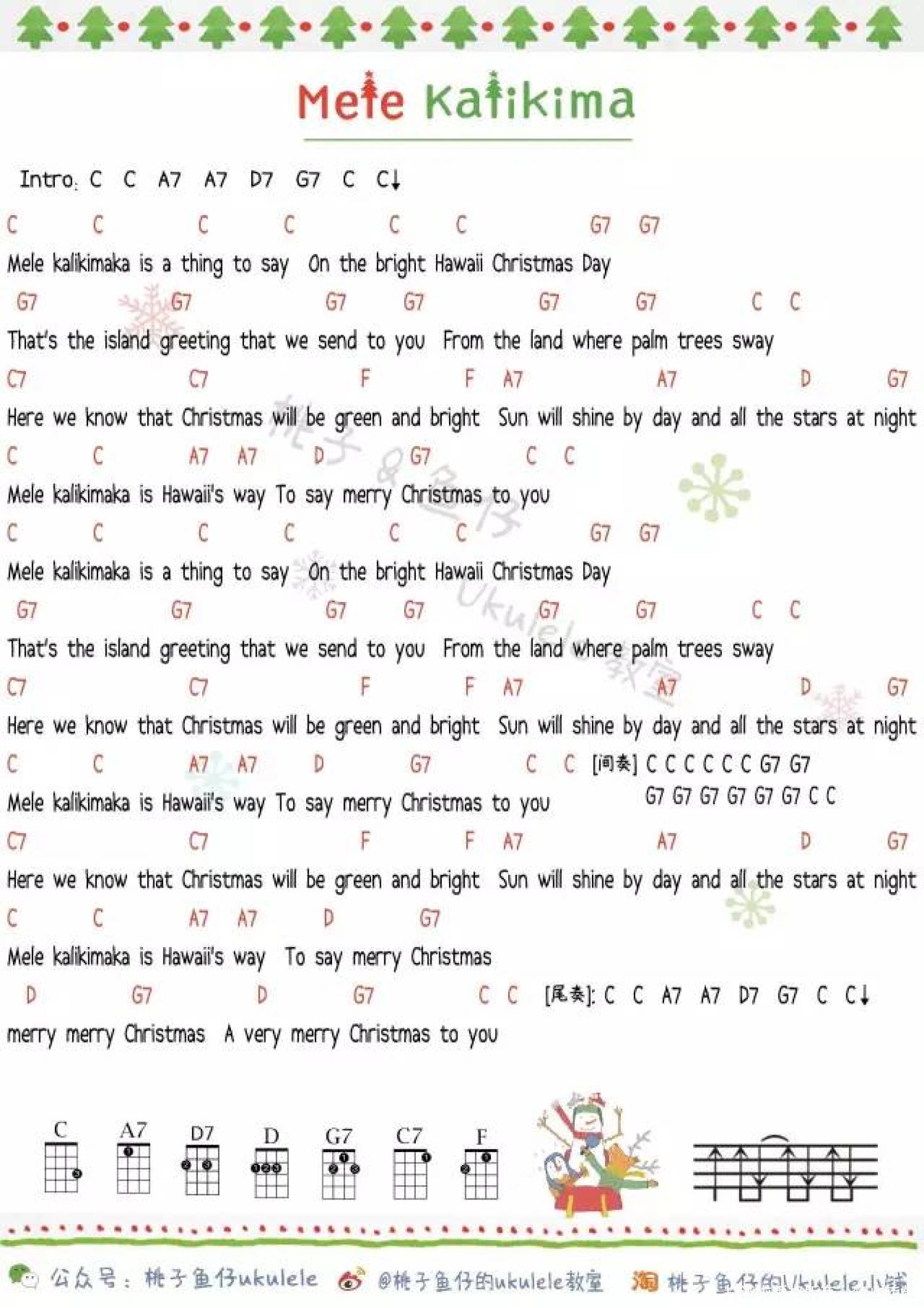 曲谱介绍: 夏威夷风圣诞歌曲《Mele kalikimaka》_C调尤克里里谱