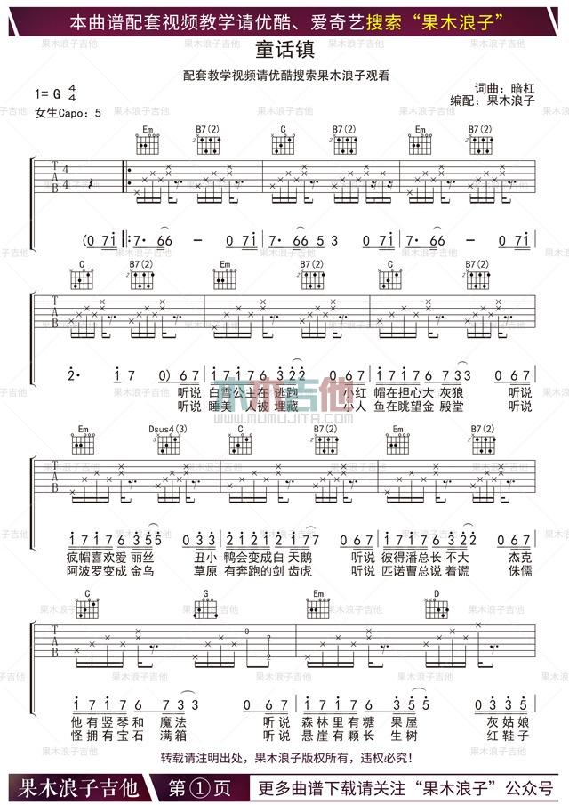童话镇_G调吉他谱 - 童话镇 - G调吉他弹唱谱