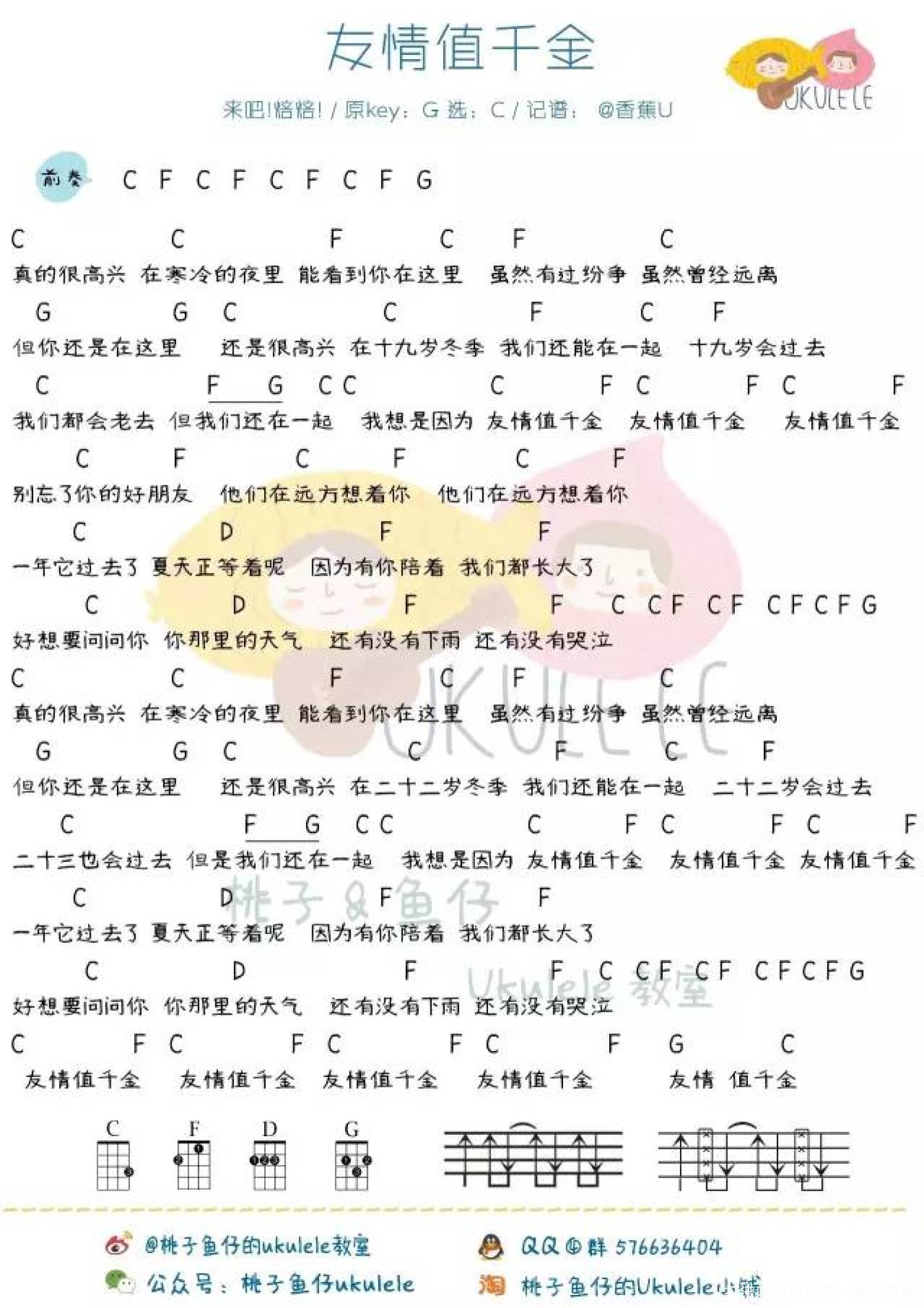 曲谱介绍: 来吧!焙焙《友情值千金》_C调尤克里里谱