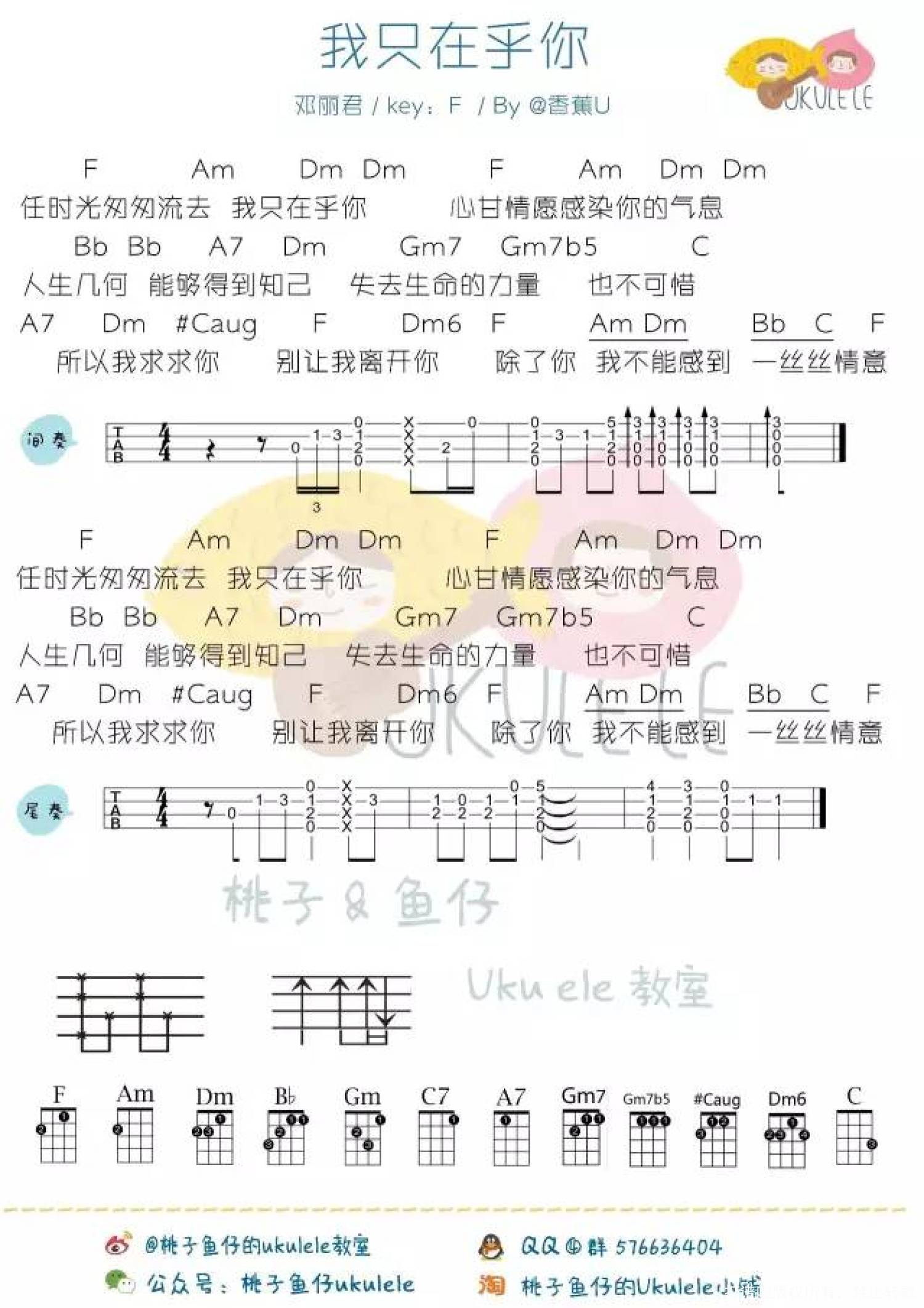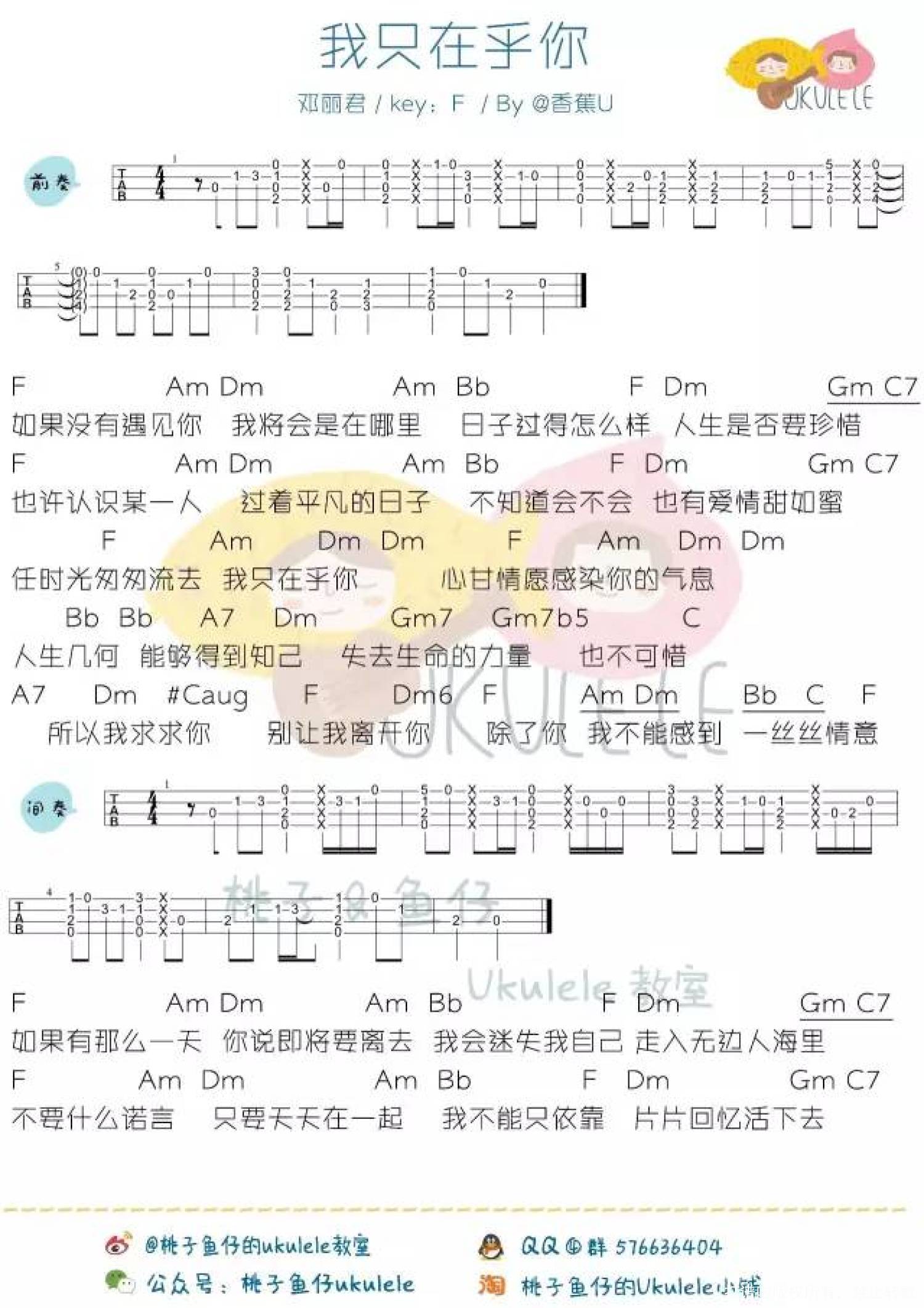 曲谱介绍: 邓丽君《我只在乎你》_E调尤克里里谱