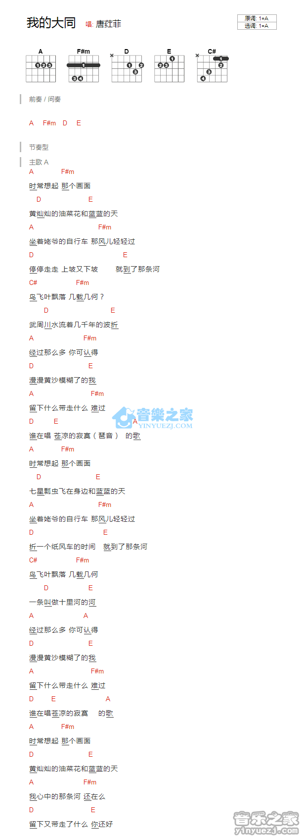 我的大同_吉他谱 - 我的大同 - A调吉他弹唱谱
