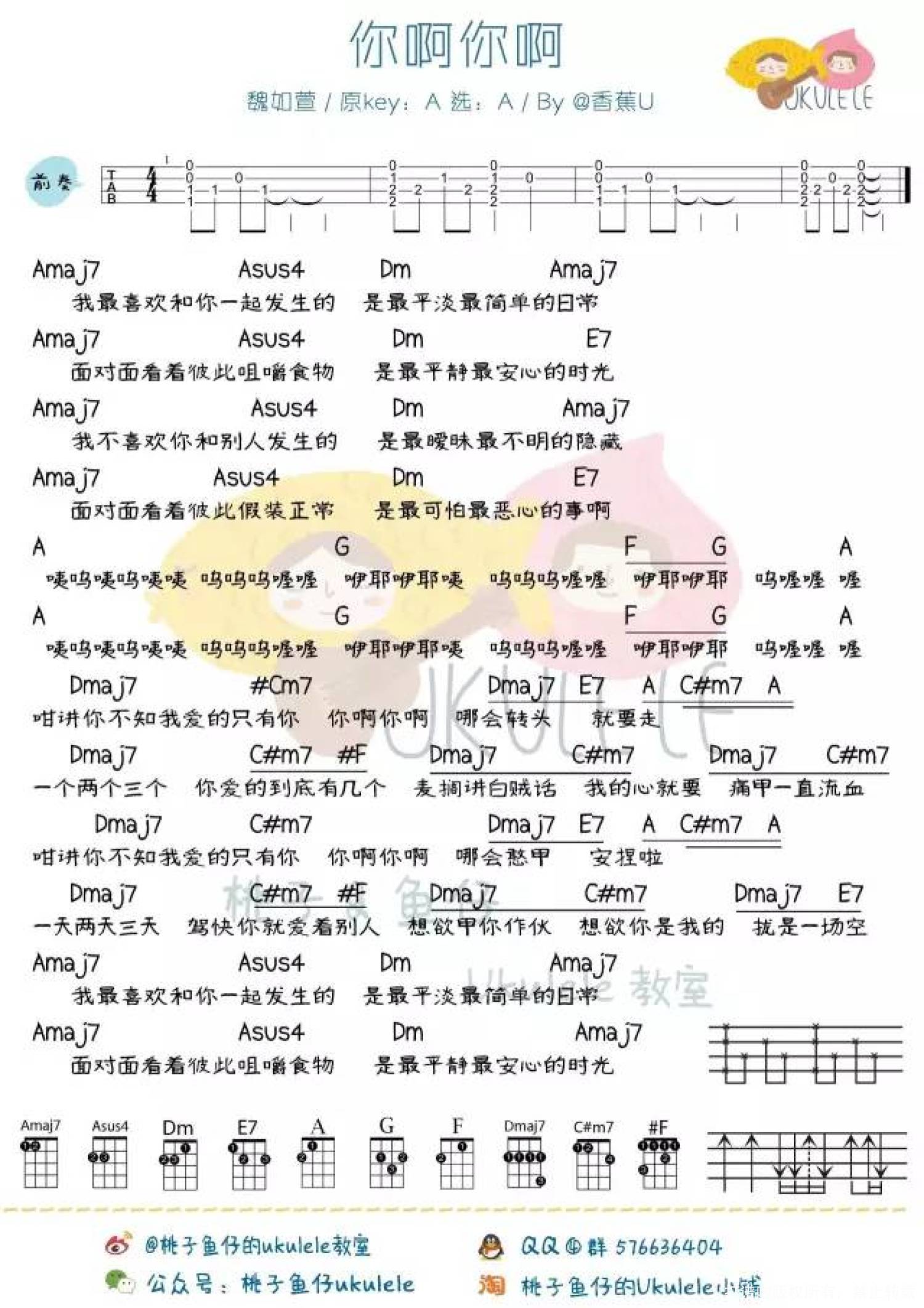 曲谱介绍: 魏如萱《你啊你啊》_A调尤克里里谱