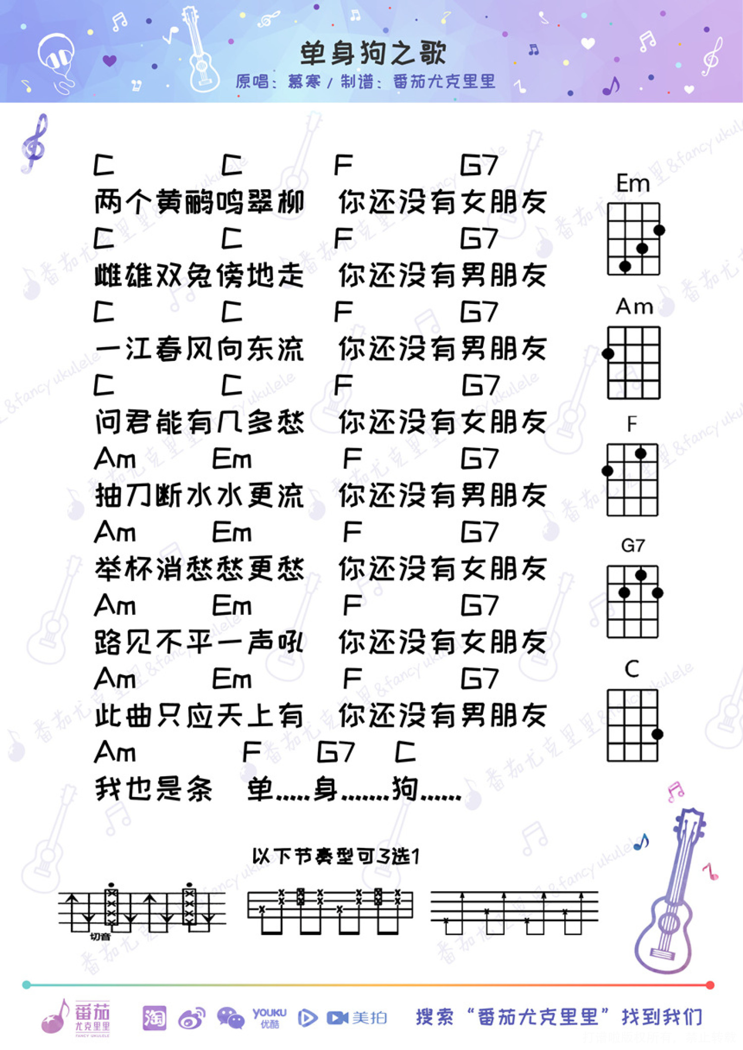 曲谱介绍: 慕寒《单身狗之歌》_C调尤克里里谱