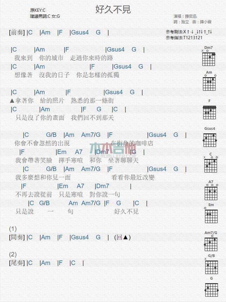 当前位置:琴谱网>吉他弹唱>好久不见