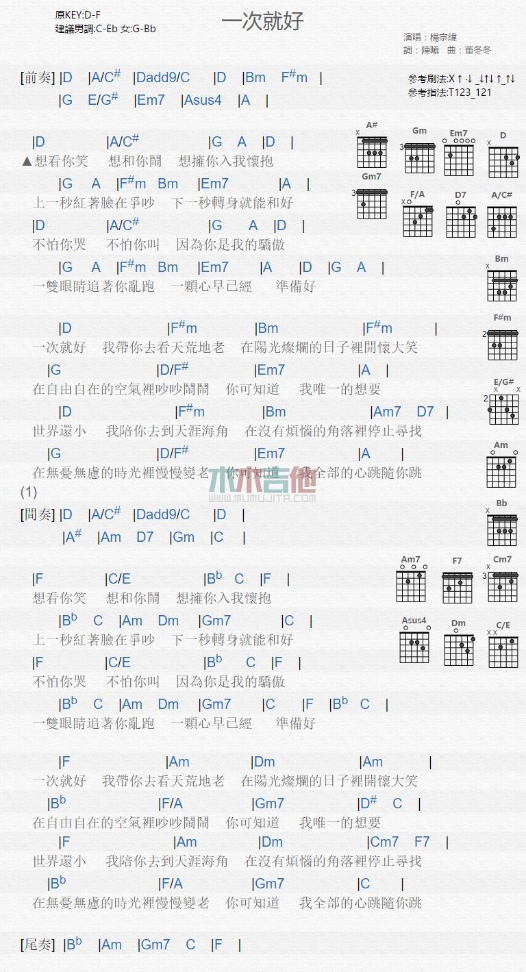 一次就好图片吉他谱 - F调吉他弹唱谱