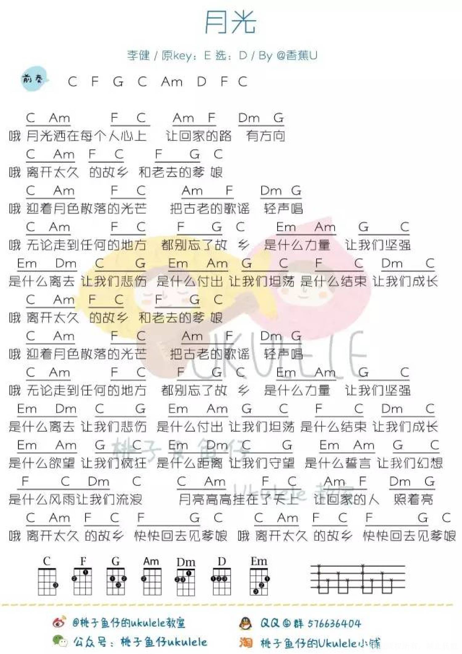 月光尤克里里谱 - 李健