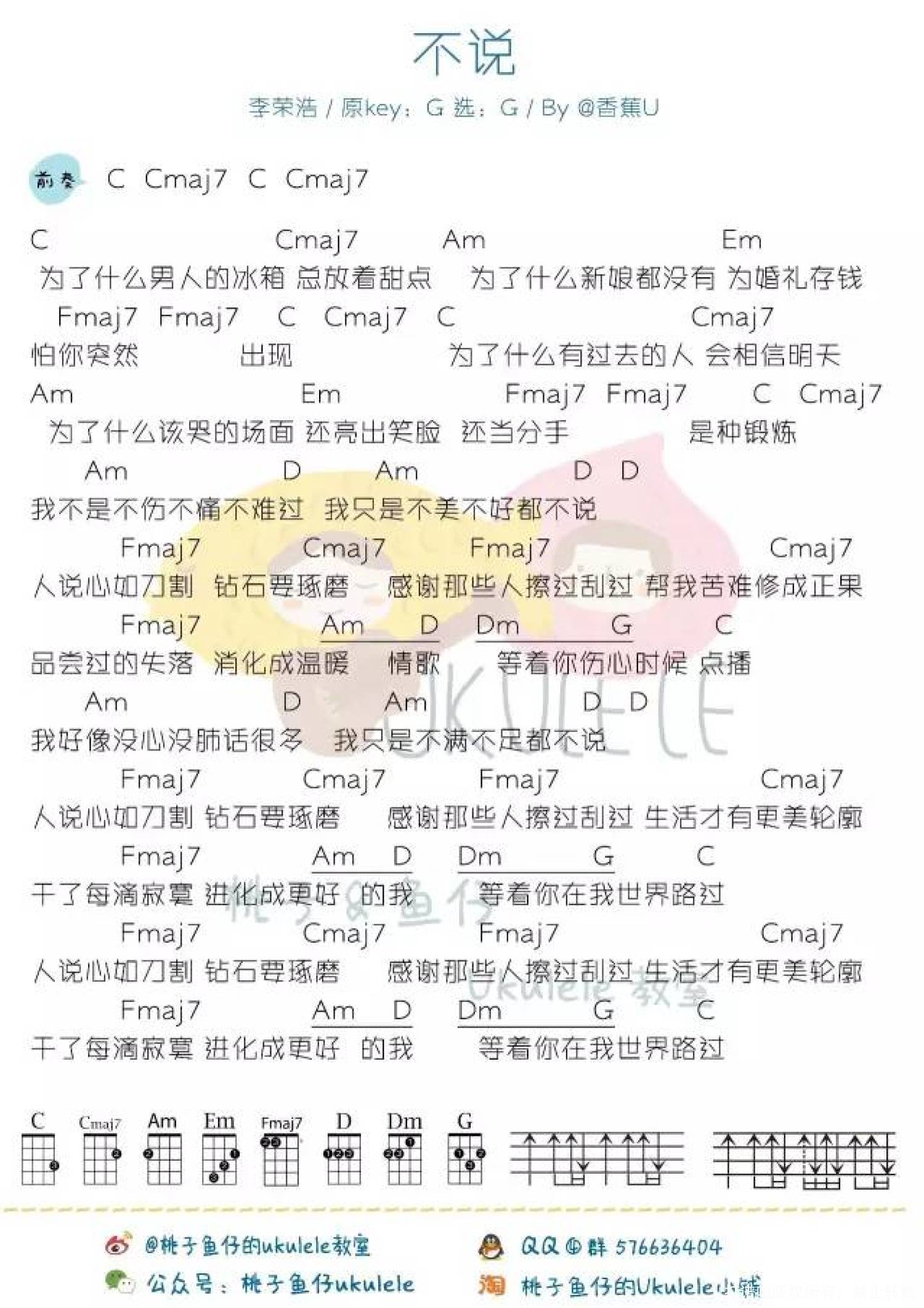 曲谱介绍: 李荣浩《不说》_C调尤克里里谱