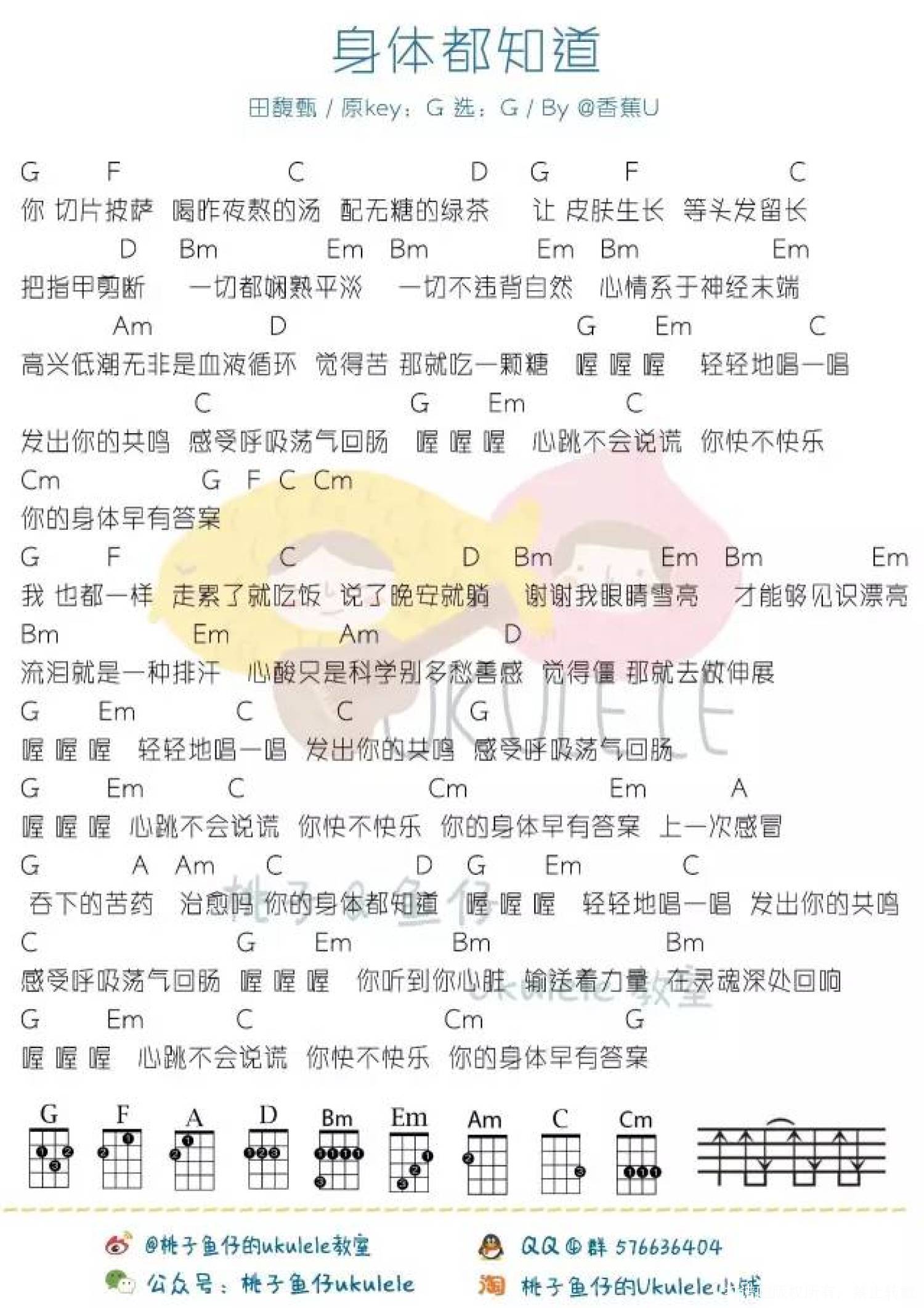 曲谱介绍: 田馥甄《身体都知道》_G调尤克里里谱