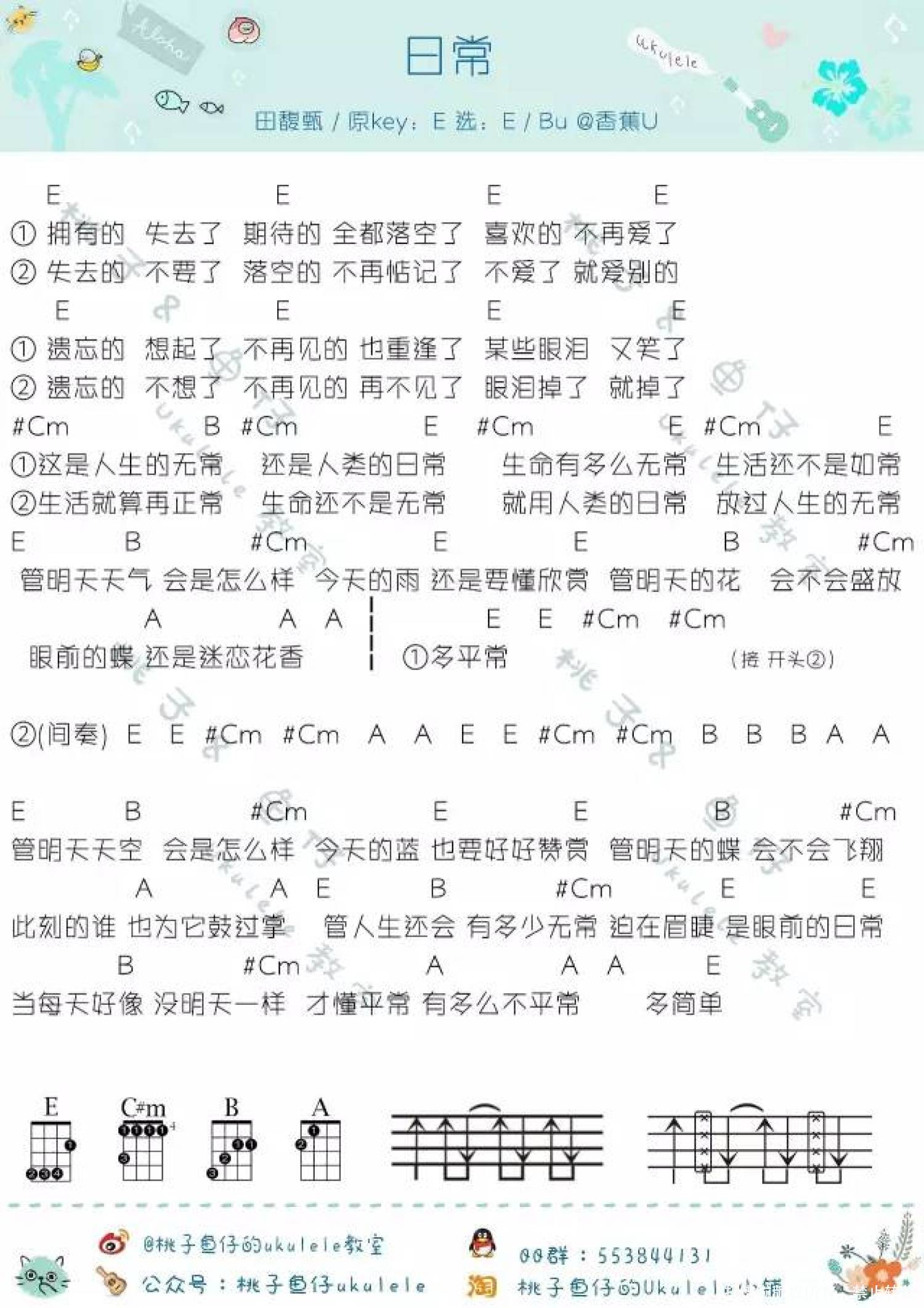 尤克里里E调来源:桃子&鱼仔369 浏览2022-05-30 21:57发布图谱共1页