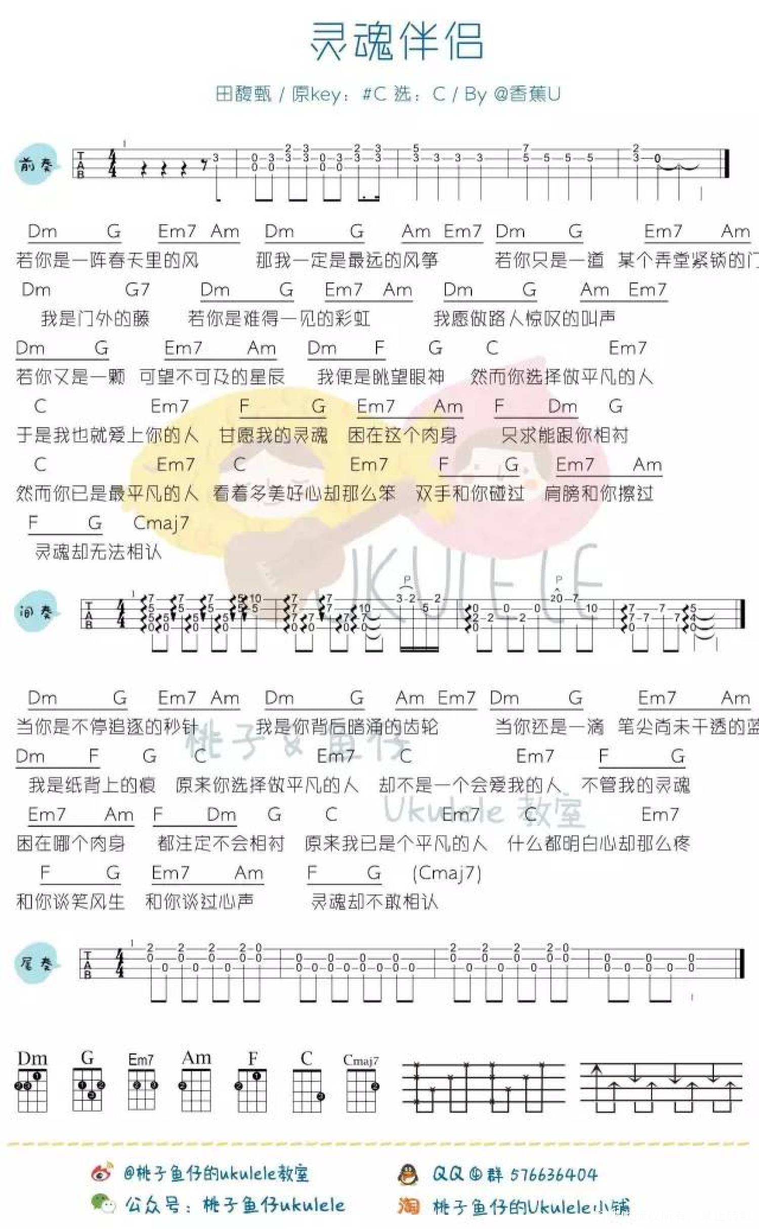 曲谱介绍: 田馥甄《灵魂伴侣》_C调尤克里里谱