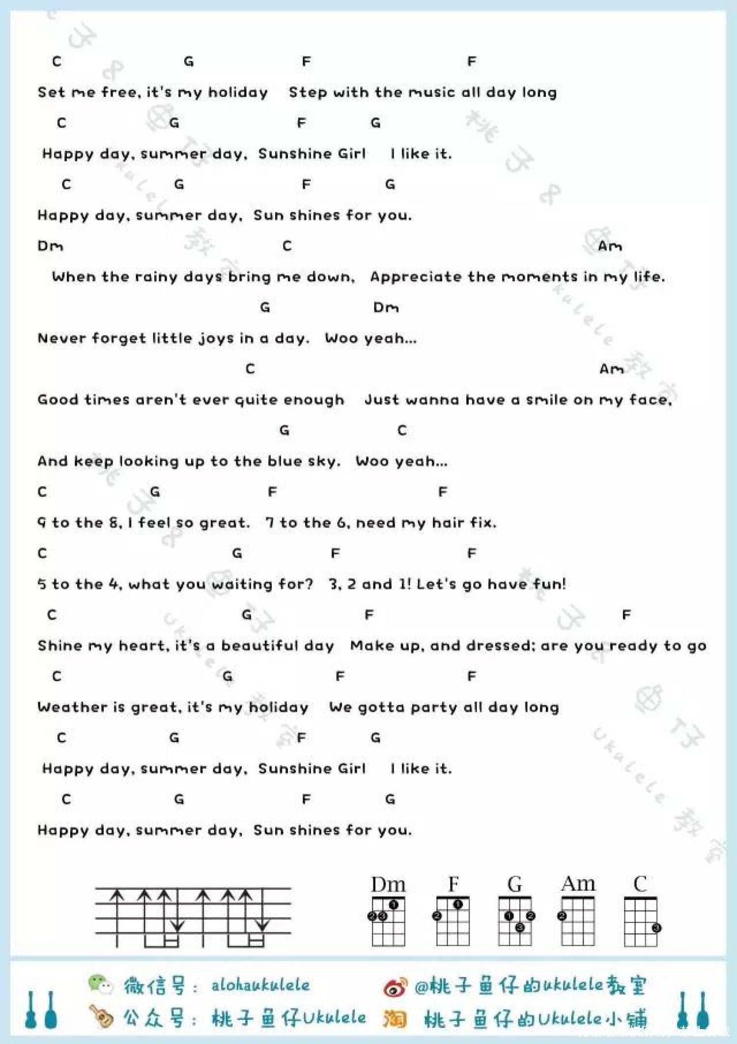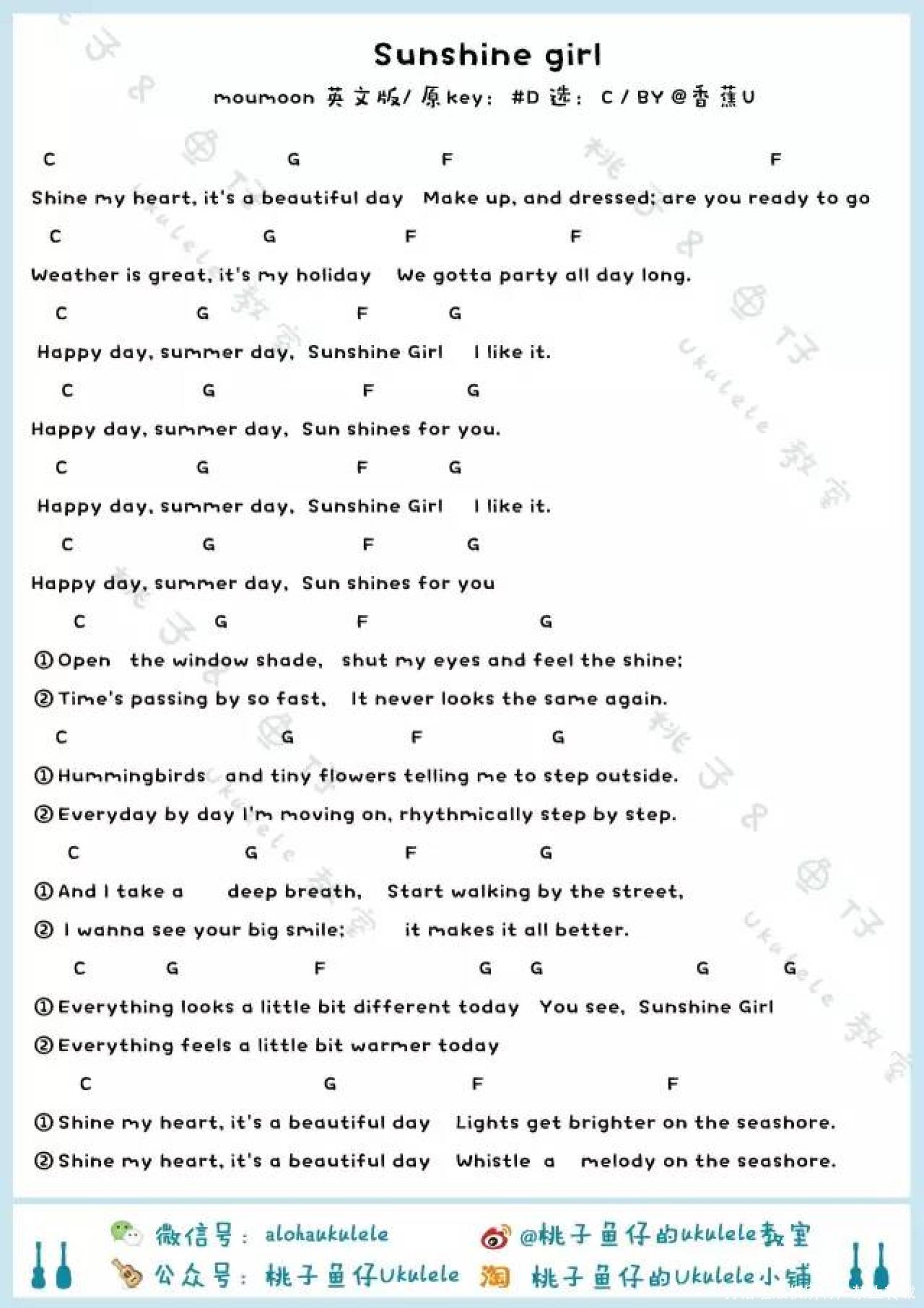 曲谱介绍: Sunshinegirl尤克里里谱曾经流行过好一段时间的歌。夏天的味道清新自然轻快可爱