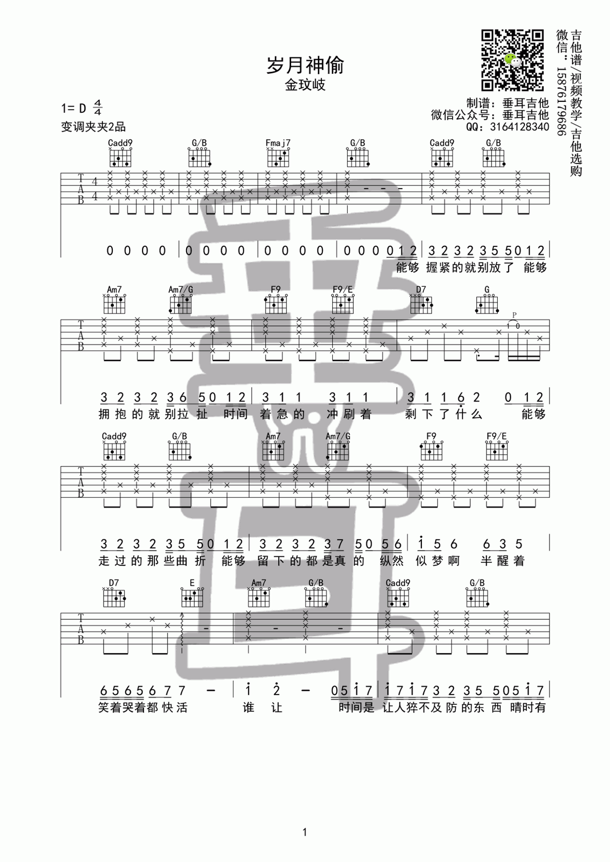 当前位置:琴谱网>吉他弹唱>岁月神偷_D调