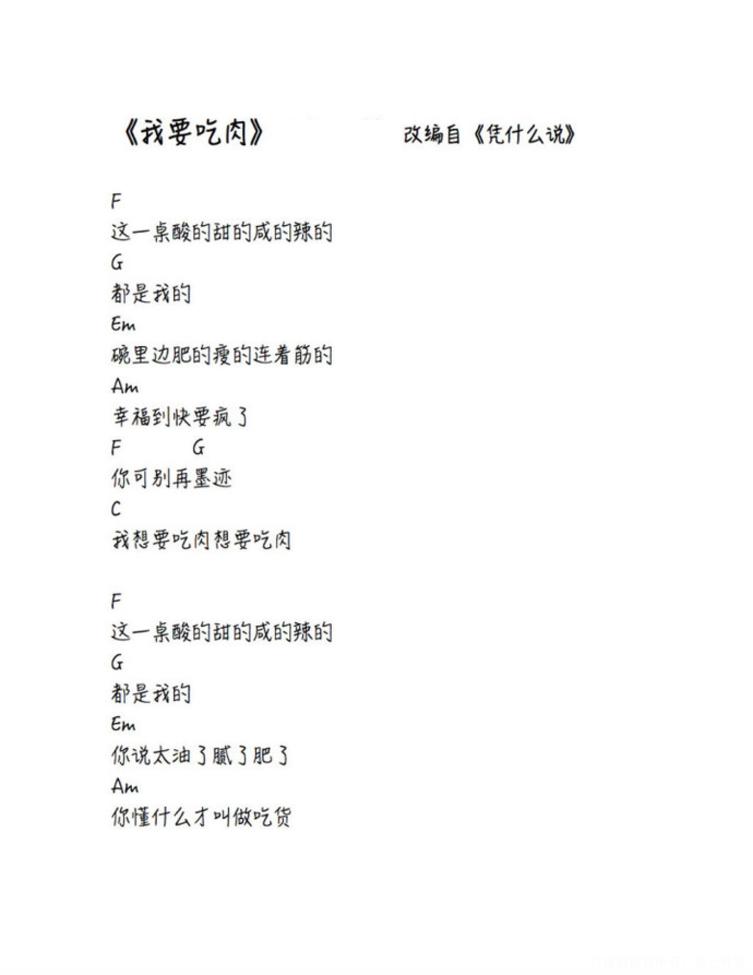 当前位置:琴谱网>尤克里里>我要吃肉