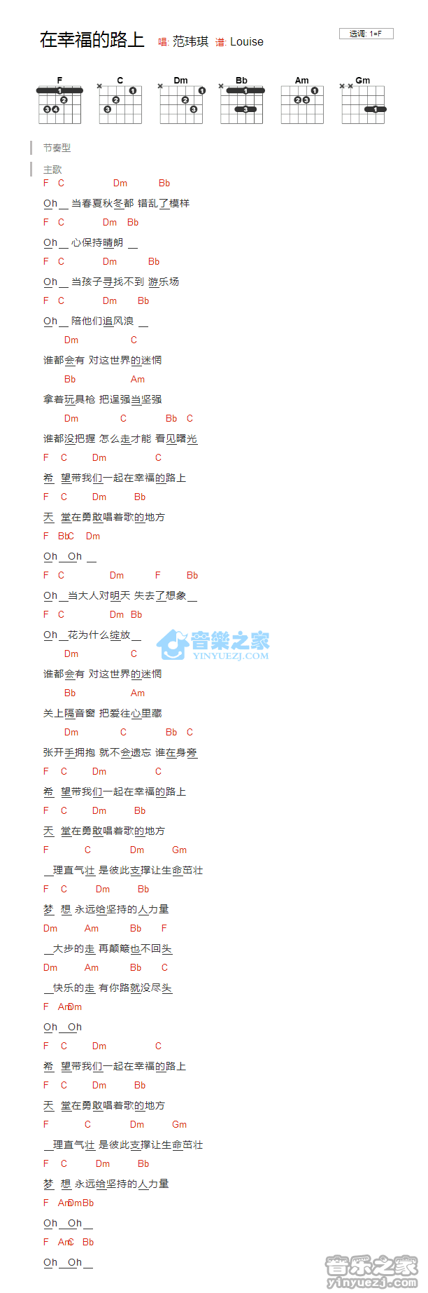 在幸福的路上_吉他谱 - 在幸福的路上 - F调吉他弹唱谱