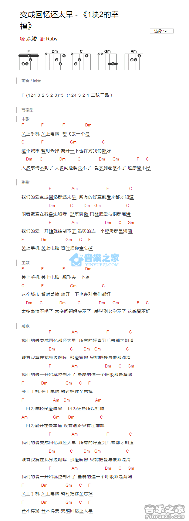 变成回忆还太早_吉他谱 - 变成回忆还太早 - F调吉他弹唱谱