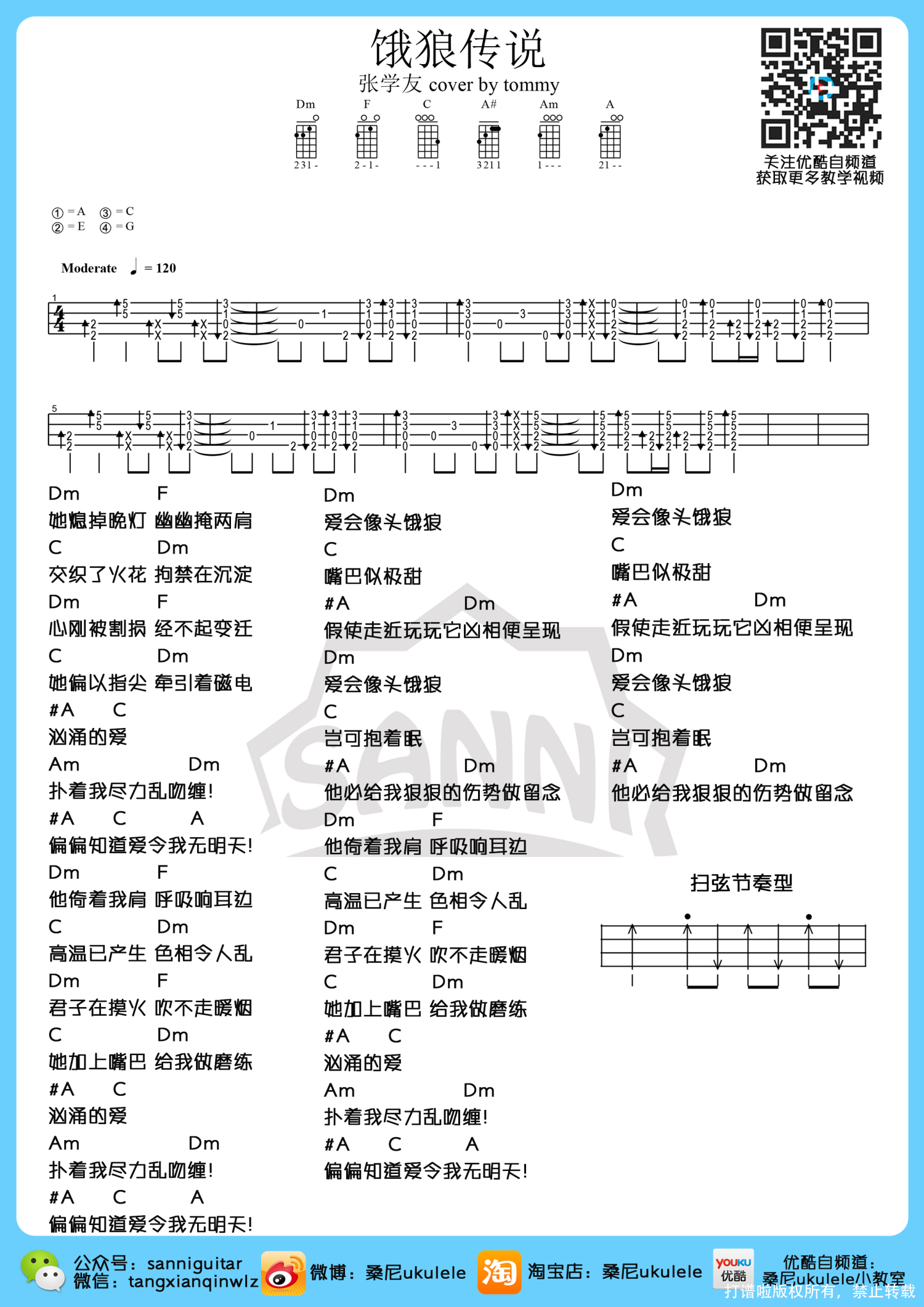曲谱介绍: 张学友《饿狼传说》_D调尤克里里谱