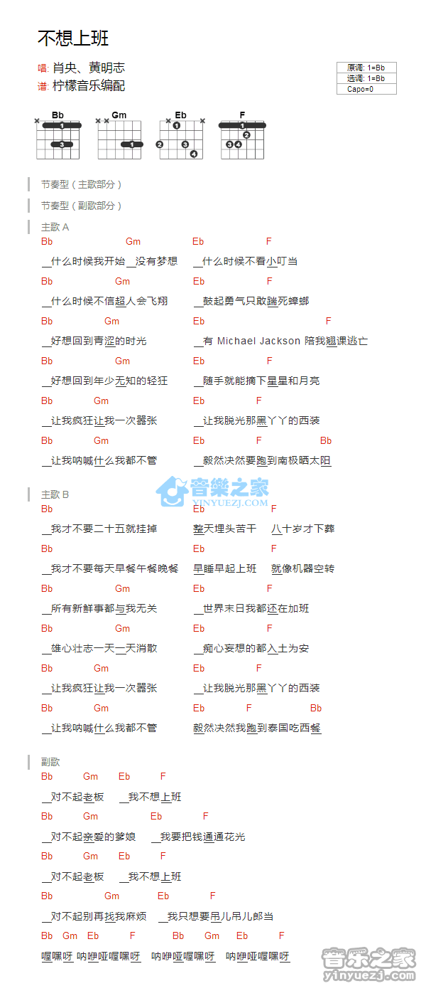 当前位置:琴谱网>吉他弹唱>不想上班_