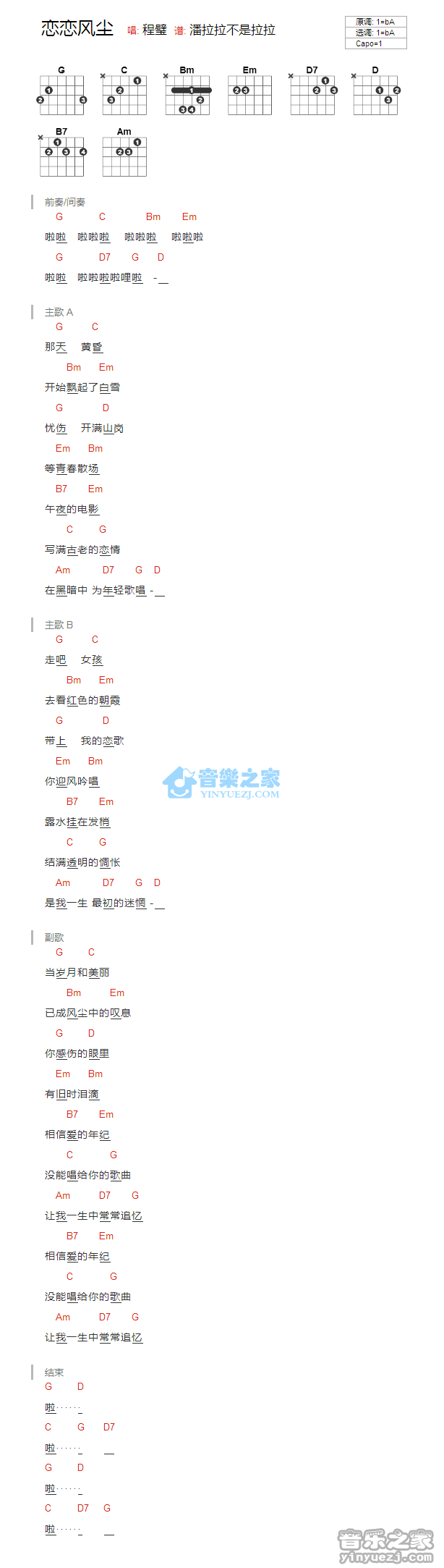 当前位置:琴谱网>吉他弹唱>恋恋风尘_