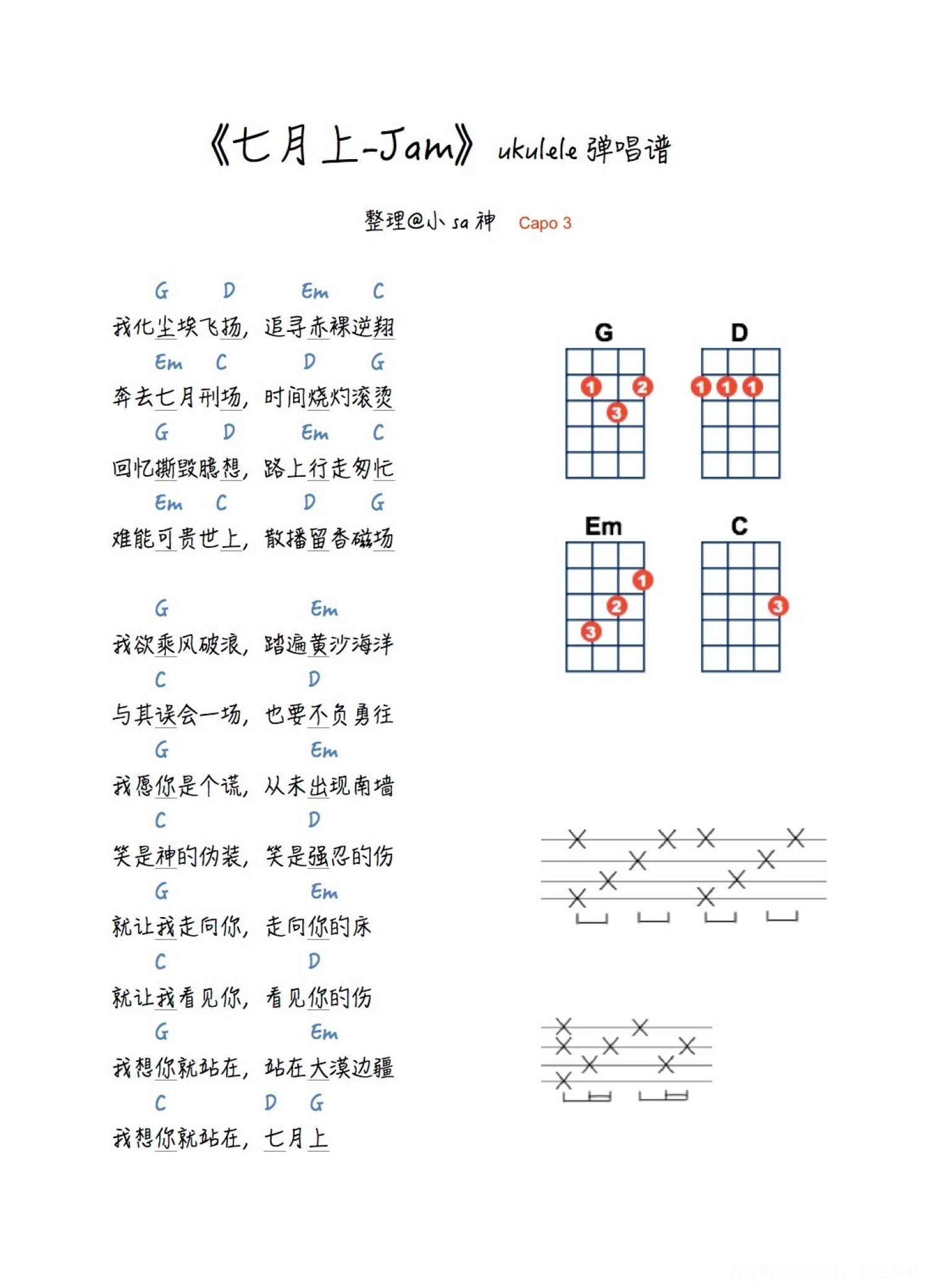 曲谱介绍: Jam《七月上》_G调尤克里里谱