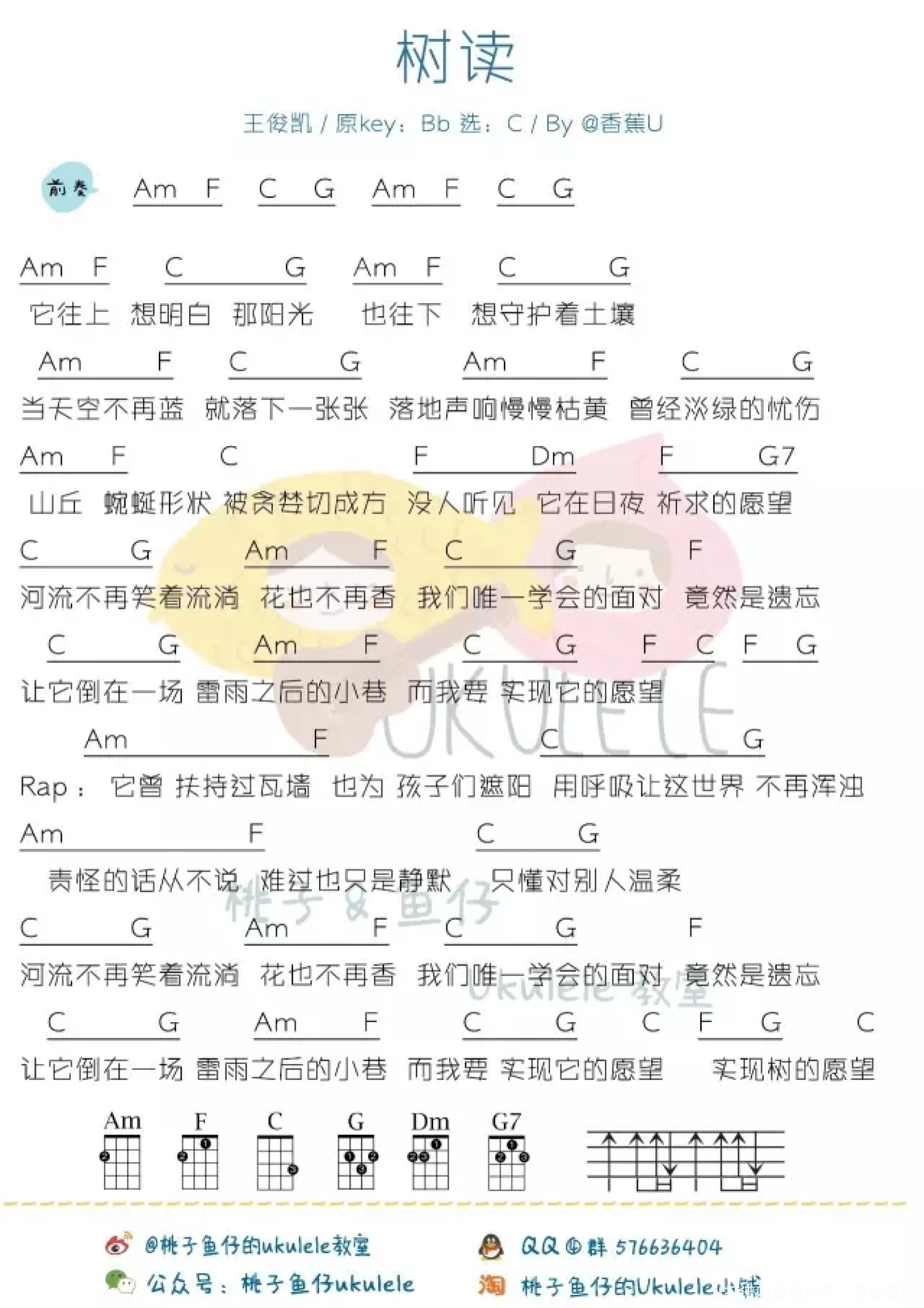曲谱介绍: 王俊凯《树读》_C调尤克里里谱