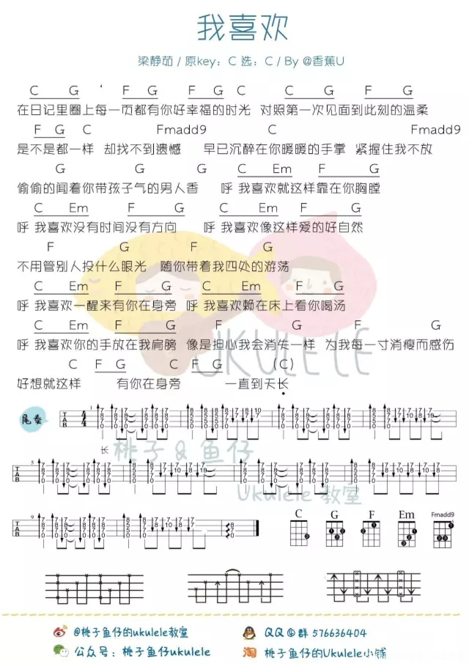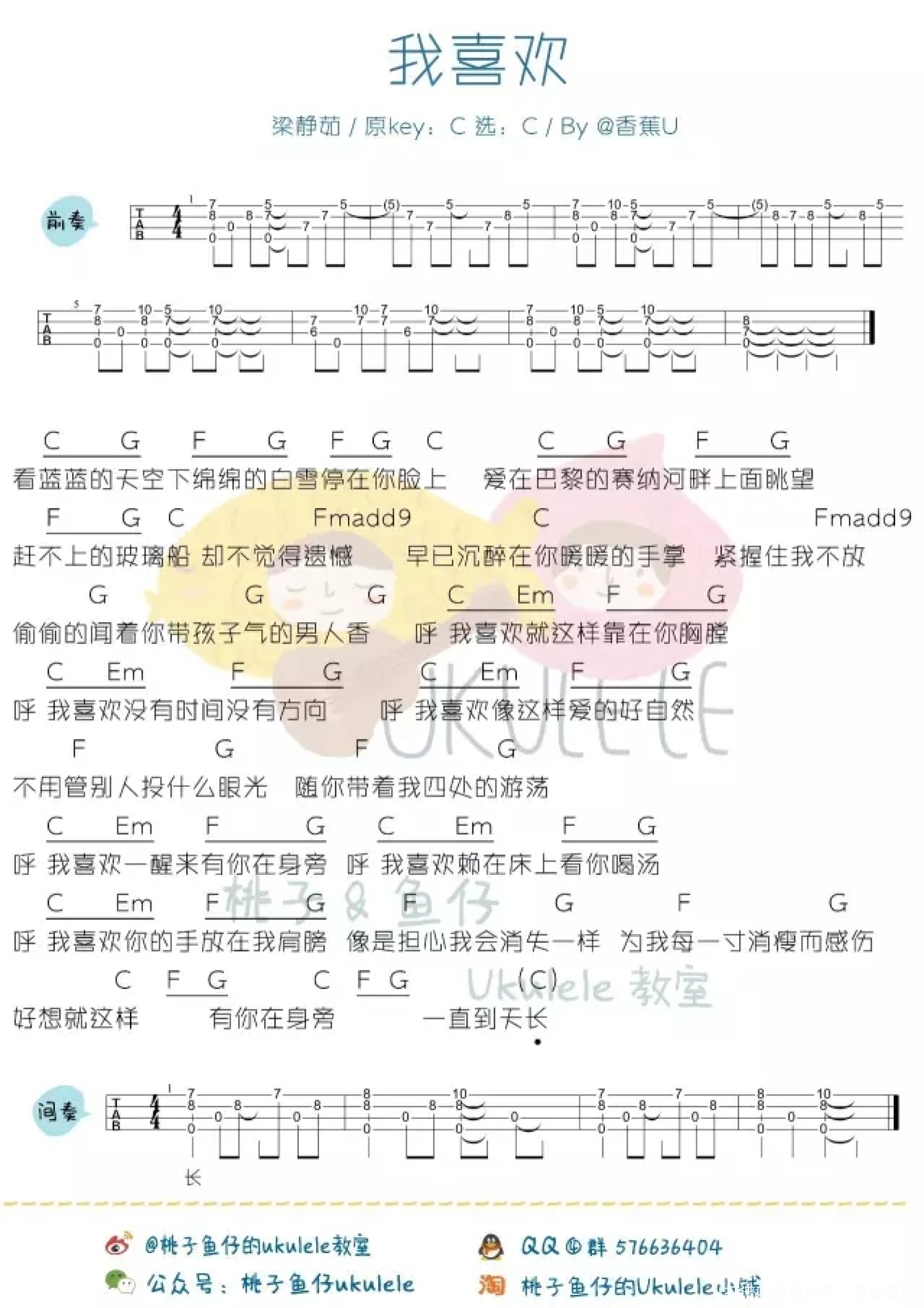 曲谱介绍: 梁静茹《我喜欢》_C调尤克里里谱