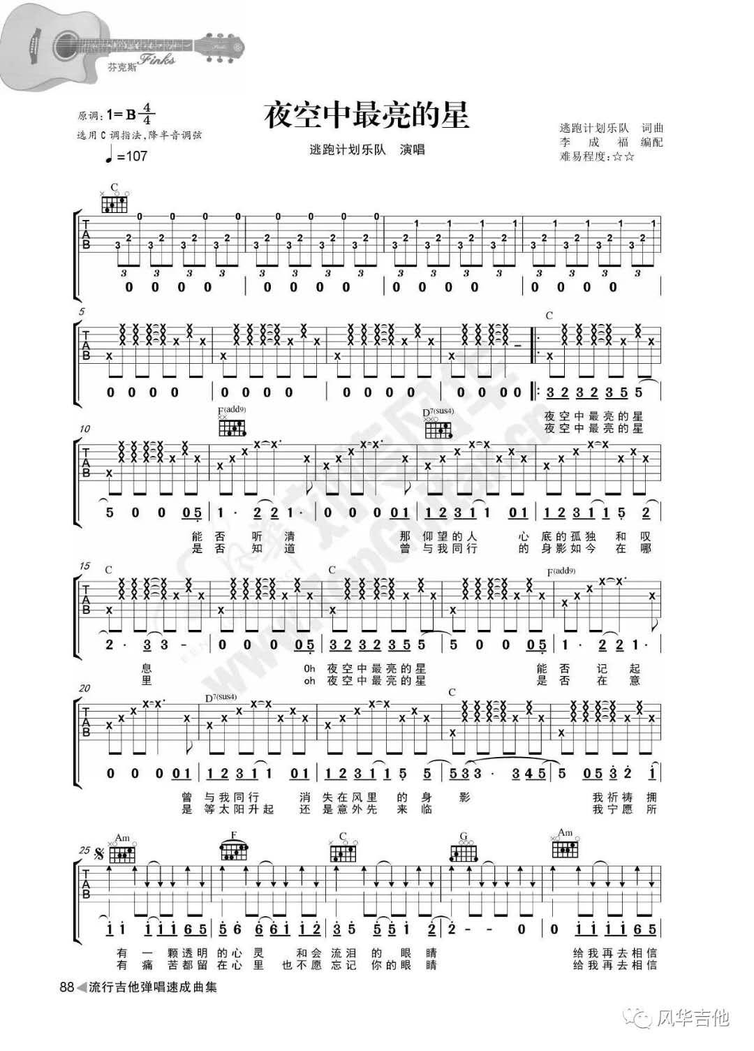 曲谱介绍: 夜空中最亮的星吉他谱逃跑计划乐队的经典歌曲《夜空中最亮的星》吉他谱。感谢您编写sinbax。找到夜空中最亮的星星的三个版本来听。原来逃跑计划的版本是浪子回头的深情,不拘小节,毫无意义。张恒远的版本简单、干净、遥远、感伤。张杰的版本是光明和华丽,自由发挥。风格不同。