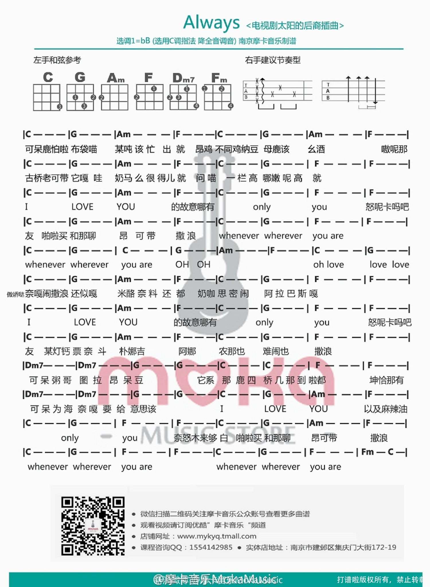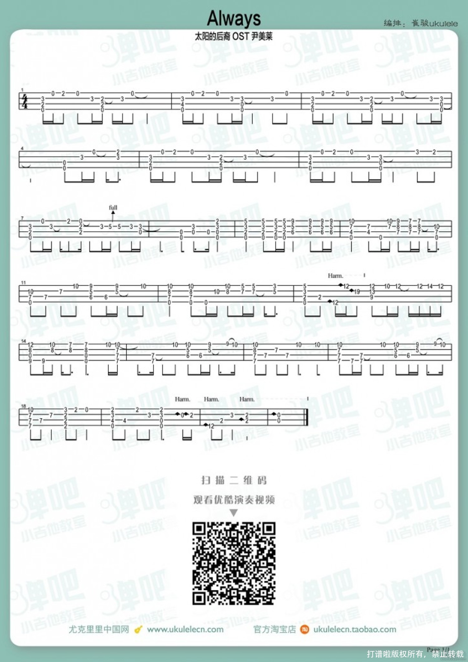 曲谱介绍: 太阳的后裔 主题曲《Always》_C调尤克里里谱