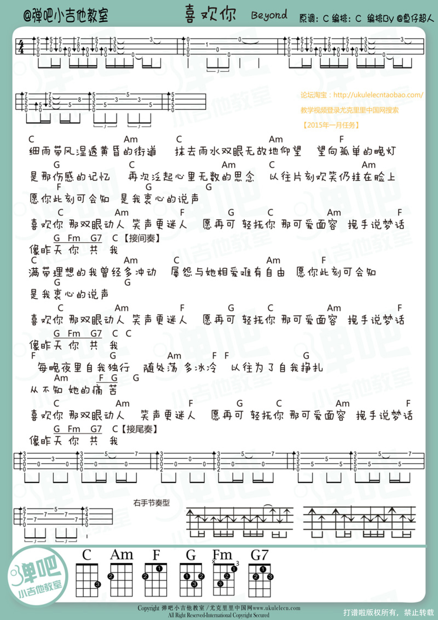 喜欢你尤克里里谱 - Beyond