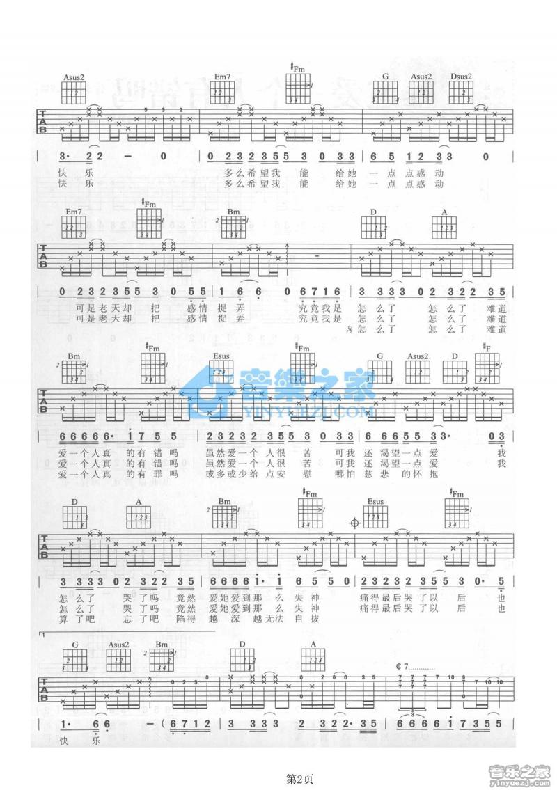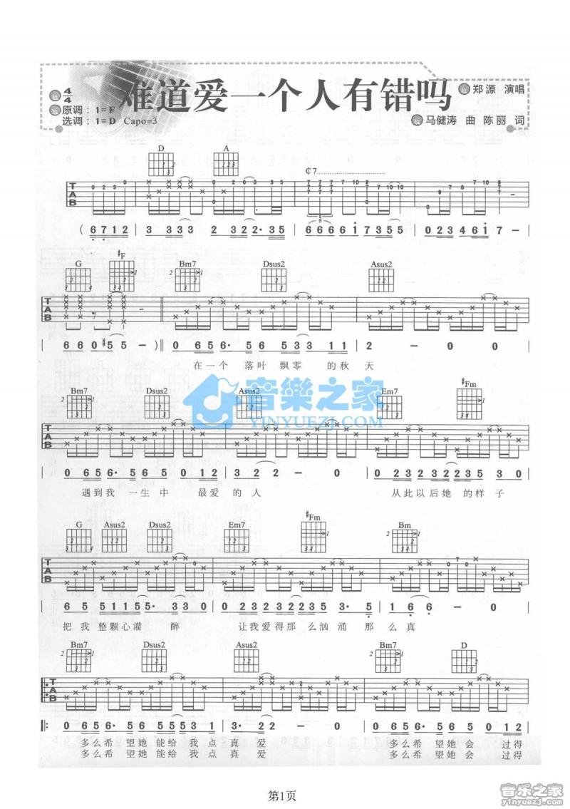 难道爱一个人有错吗_吉他谱 - 难道爱一个人有错吗 - D调吉他弹唱谱
