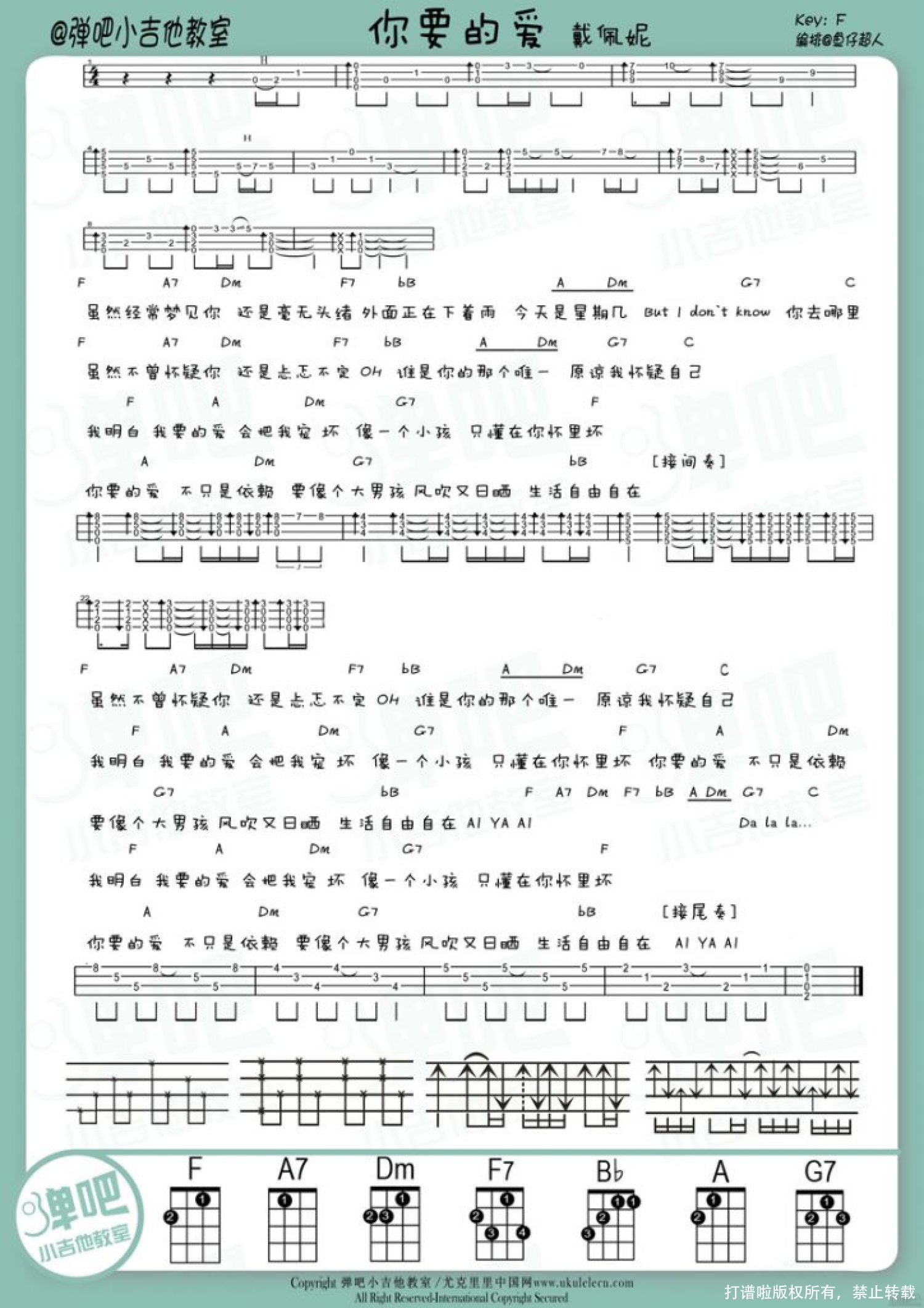 曲谱介绍: 戴佩妮《你要的爱》_F调尤克里里谱