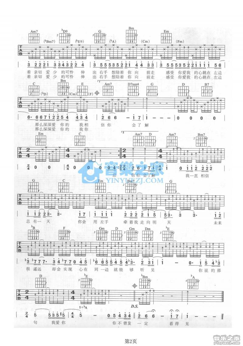 曲谱介绍: 左边《左边_》吉他弹唱谱,采用A调指法编配,共有2张高清图谱,免翻页排版设计。