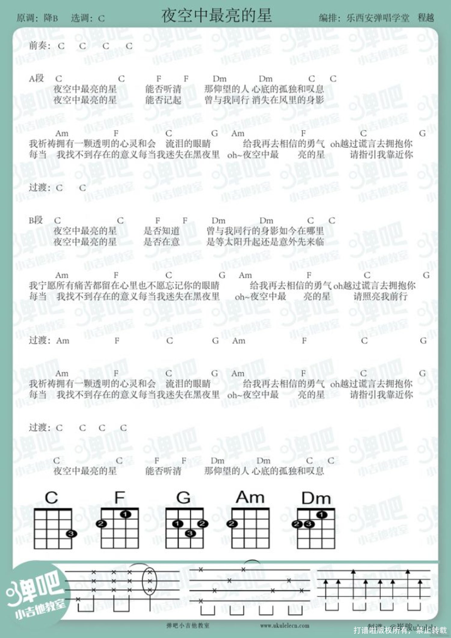 当前位置:琴谱网>尤克里里>夜空中最亮的星