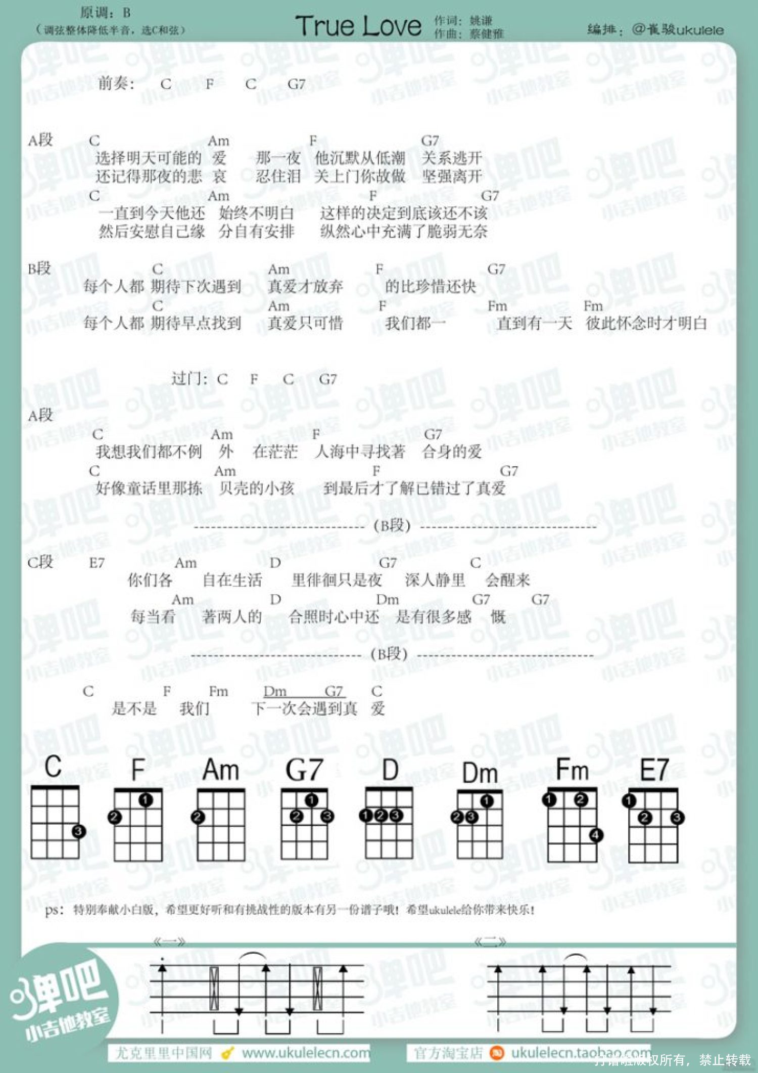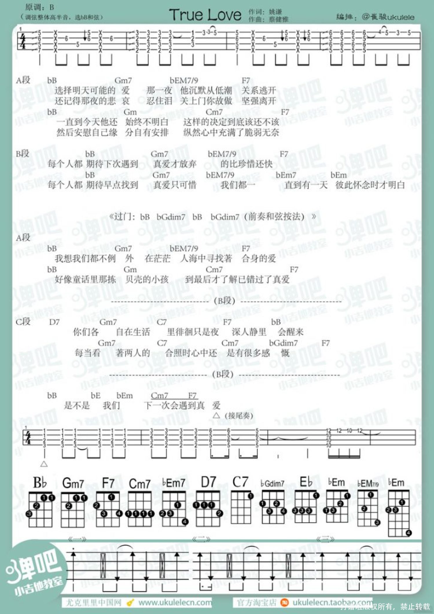 曲谱介绍: 蔡健雅《True Love》_B调尤克里里谱