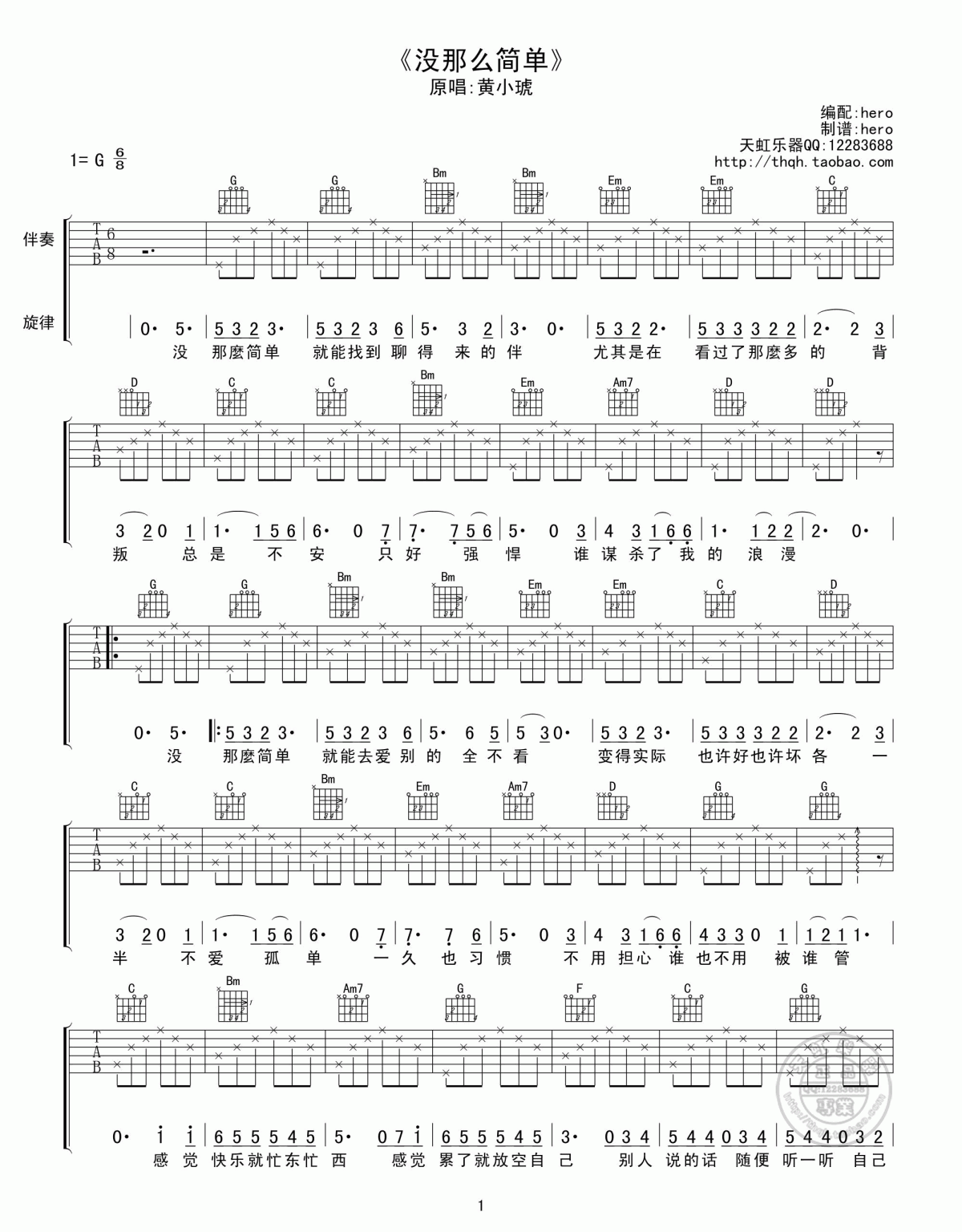 琴谱网为您精心推荐 没那么简单 高清图谱