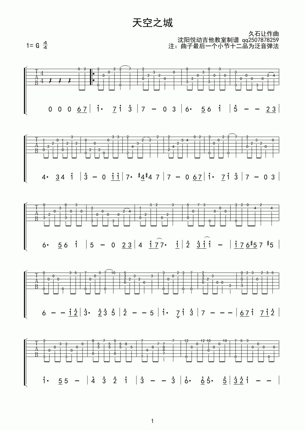 曲谱介绍: 久石让《天空之城》吉他谱天空之城吉他指弹谱简单版下载,我们同时也为你准备了多种版本的的“天空之城吉他谱”做指弹独奏练习。这首歌是由网站提供的。这首歌的格式是画谱。您可以通过网站的搜索功能进行搜索。希望你会喜欢。