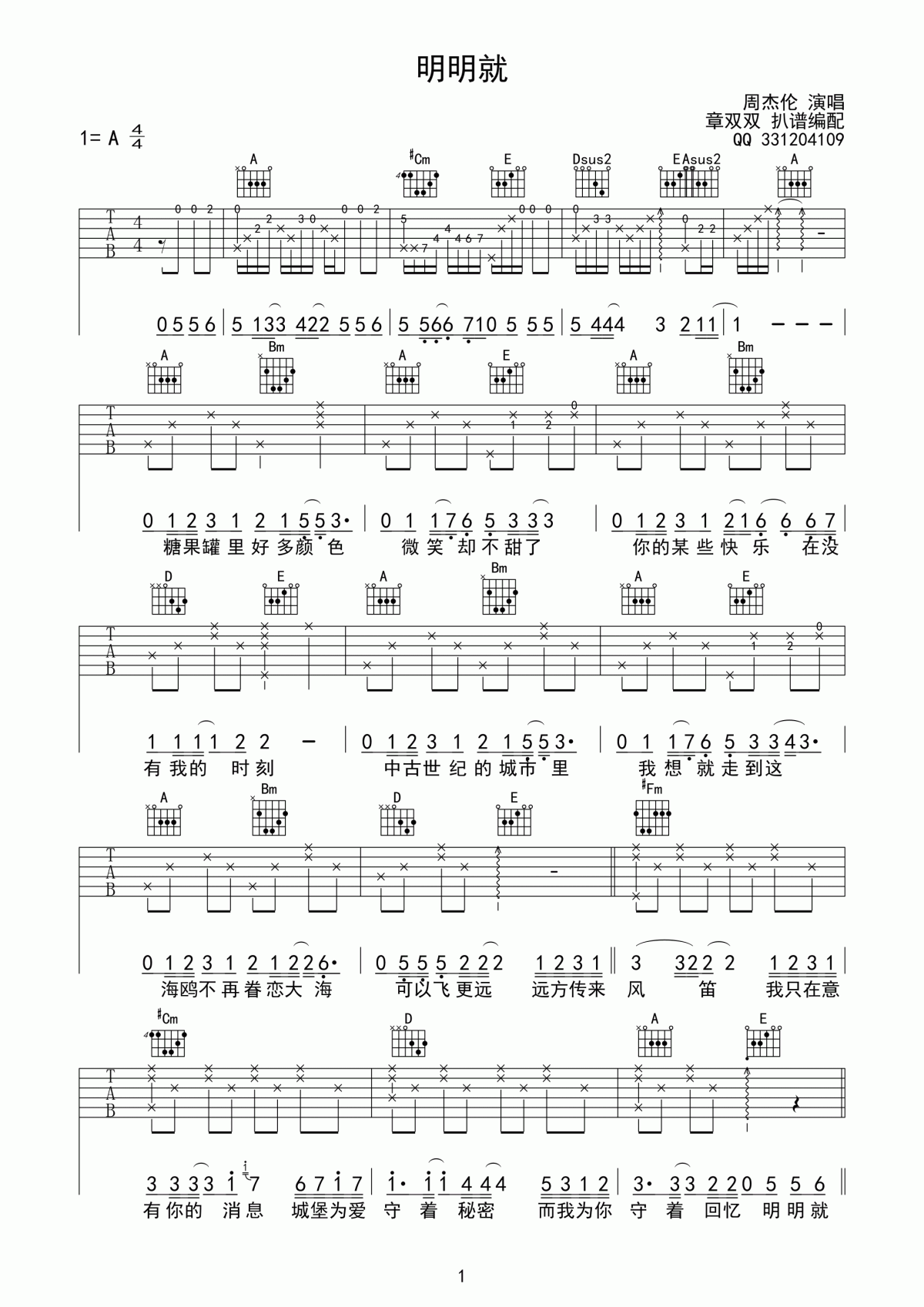 明明就吉他谱 - 周杰伦 - A调吉他弹唱谱