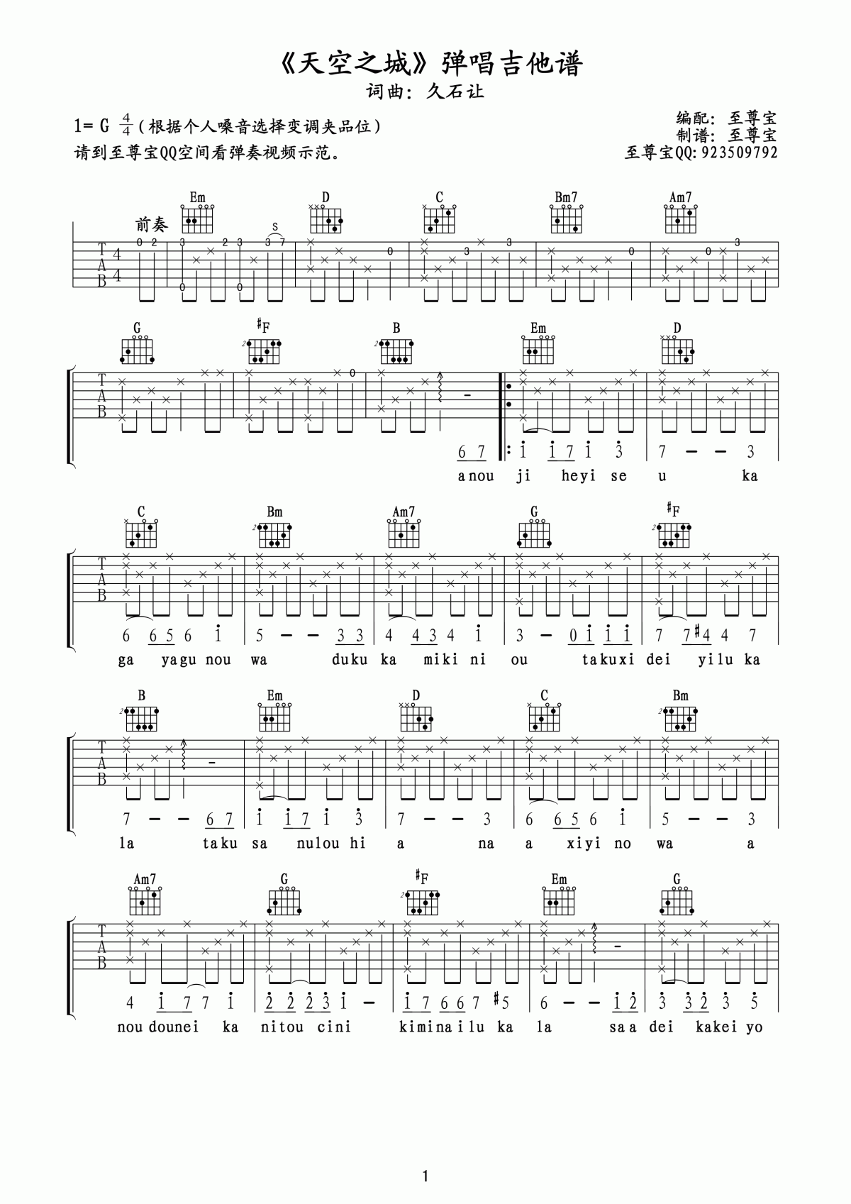 天空之城吉他谱 - G调吉他弹唱谱