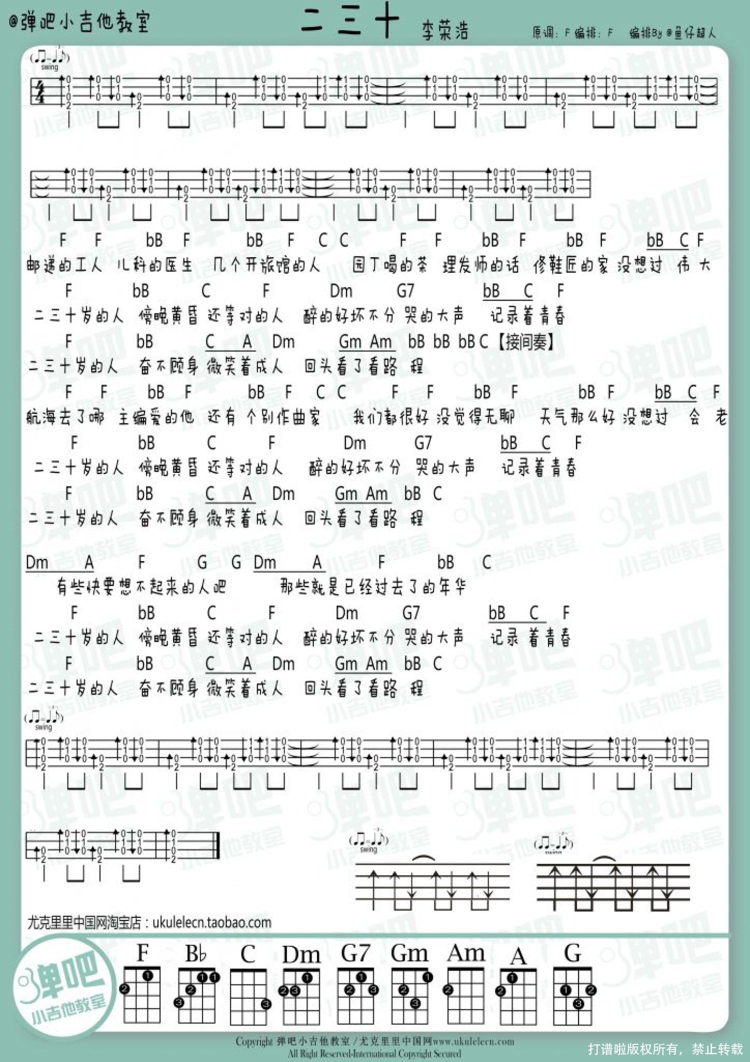 曲谱介绍: 李荣浩《二三十》_F调尤克里里谱