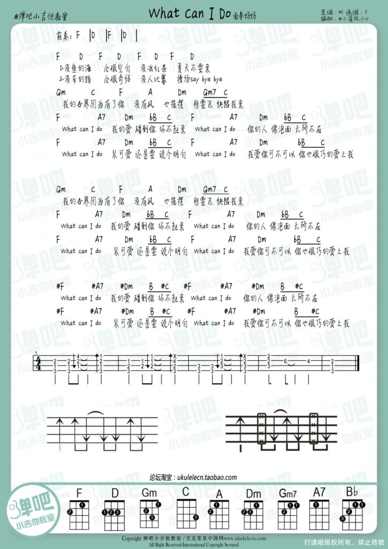曲谱介绍: 南拳妈妈《What Can I Do》_F调尤克里里谱