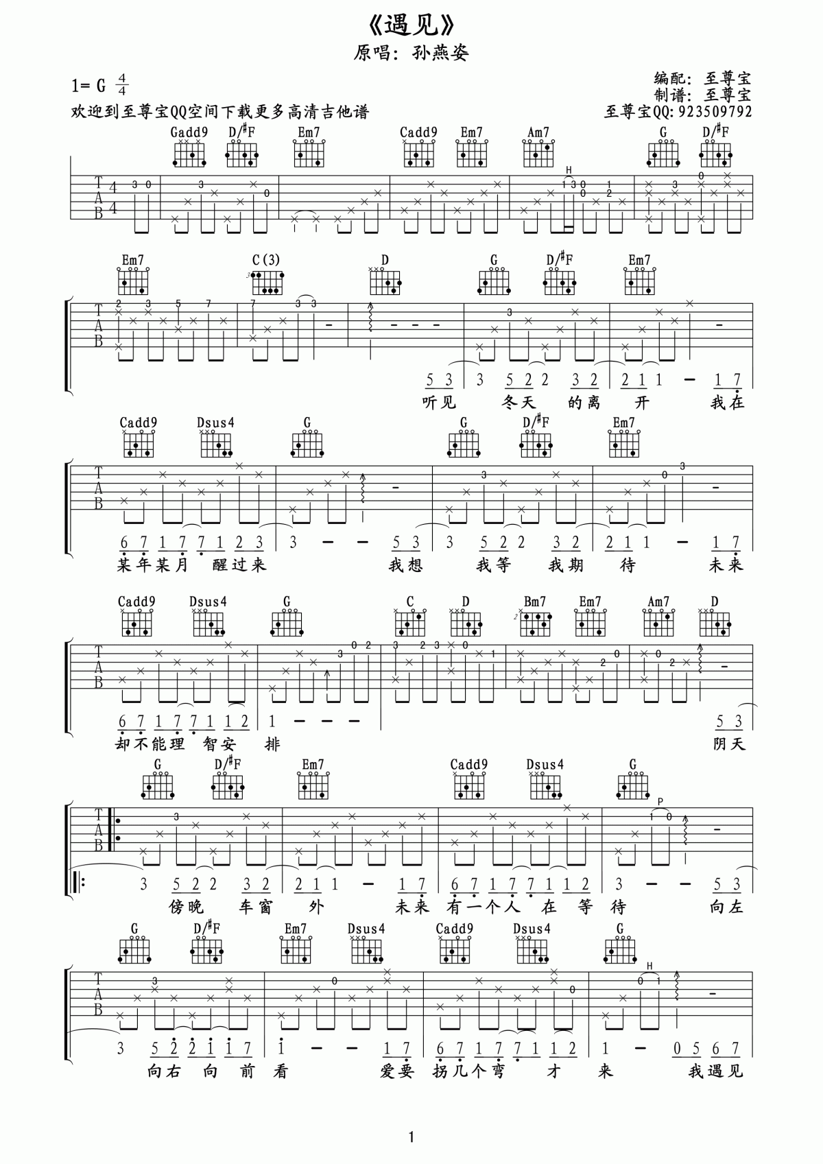 遇见吉他谱 - 孙燕姿 - G调吉他弹唱谱