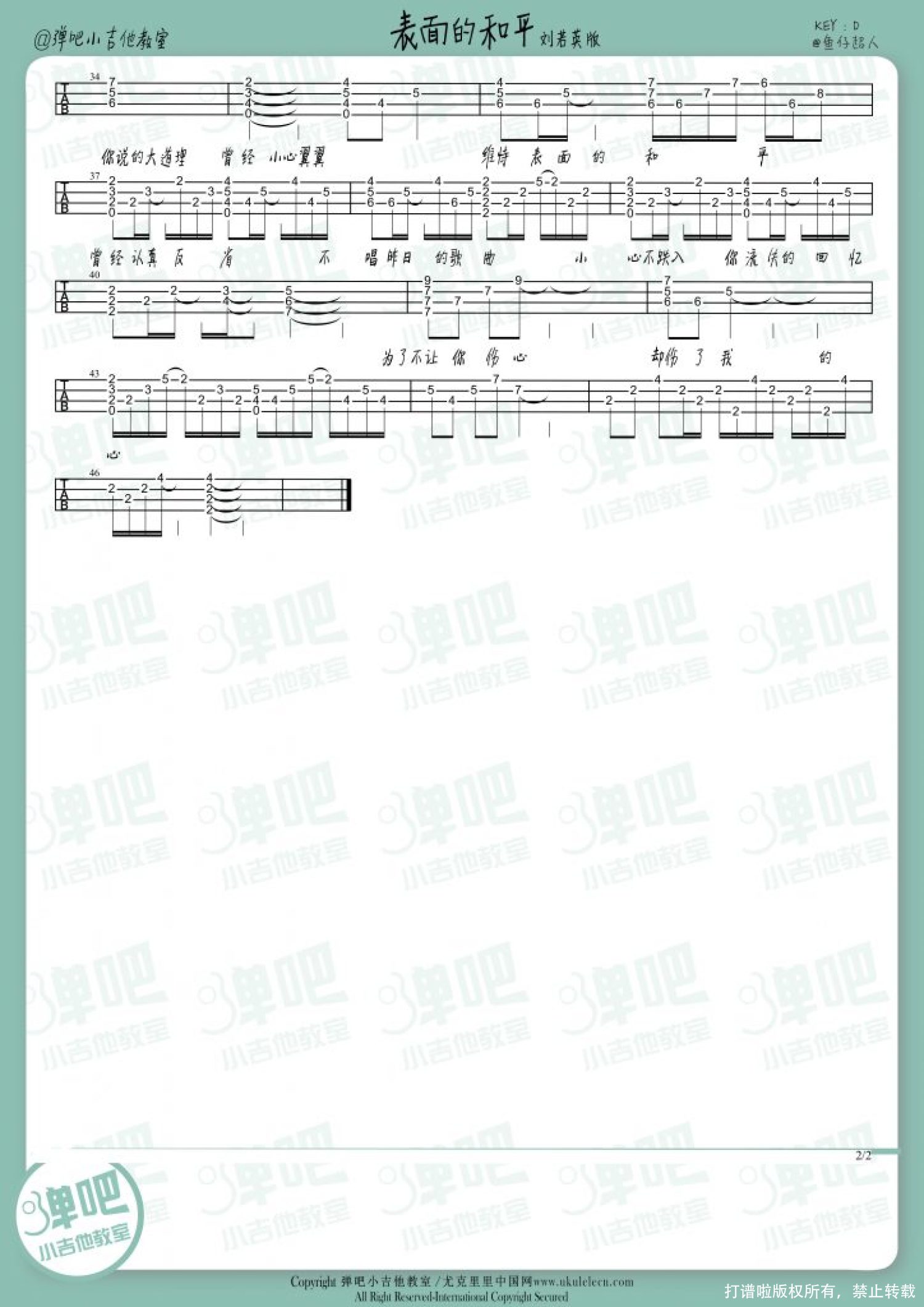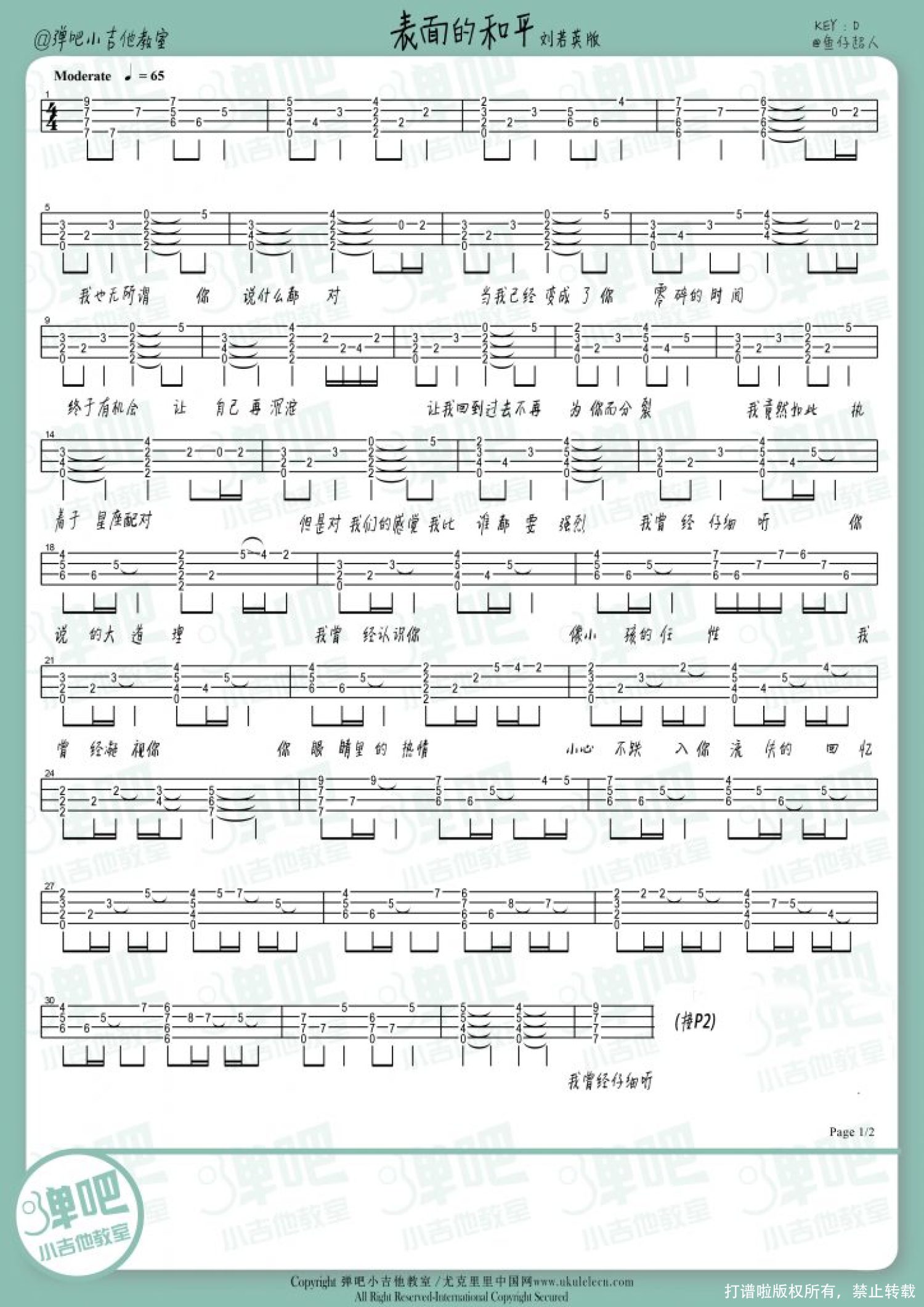 曲谱介绍: 刘若英《表面的和平》_D调尤克里里谱