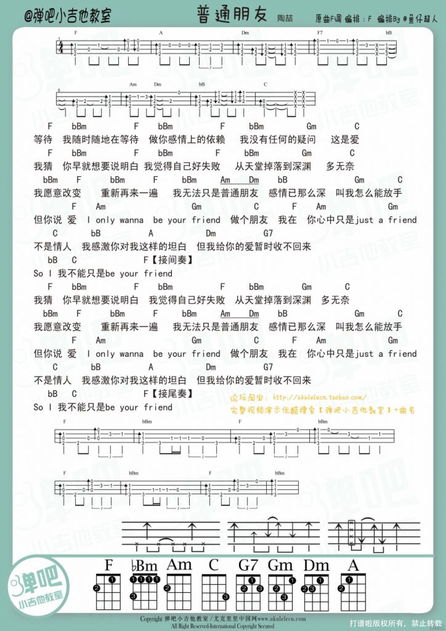 曲谱介绍: 陶喆《普通朋友》_F调尤克里里谱