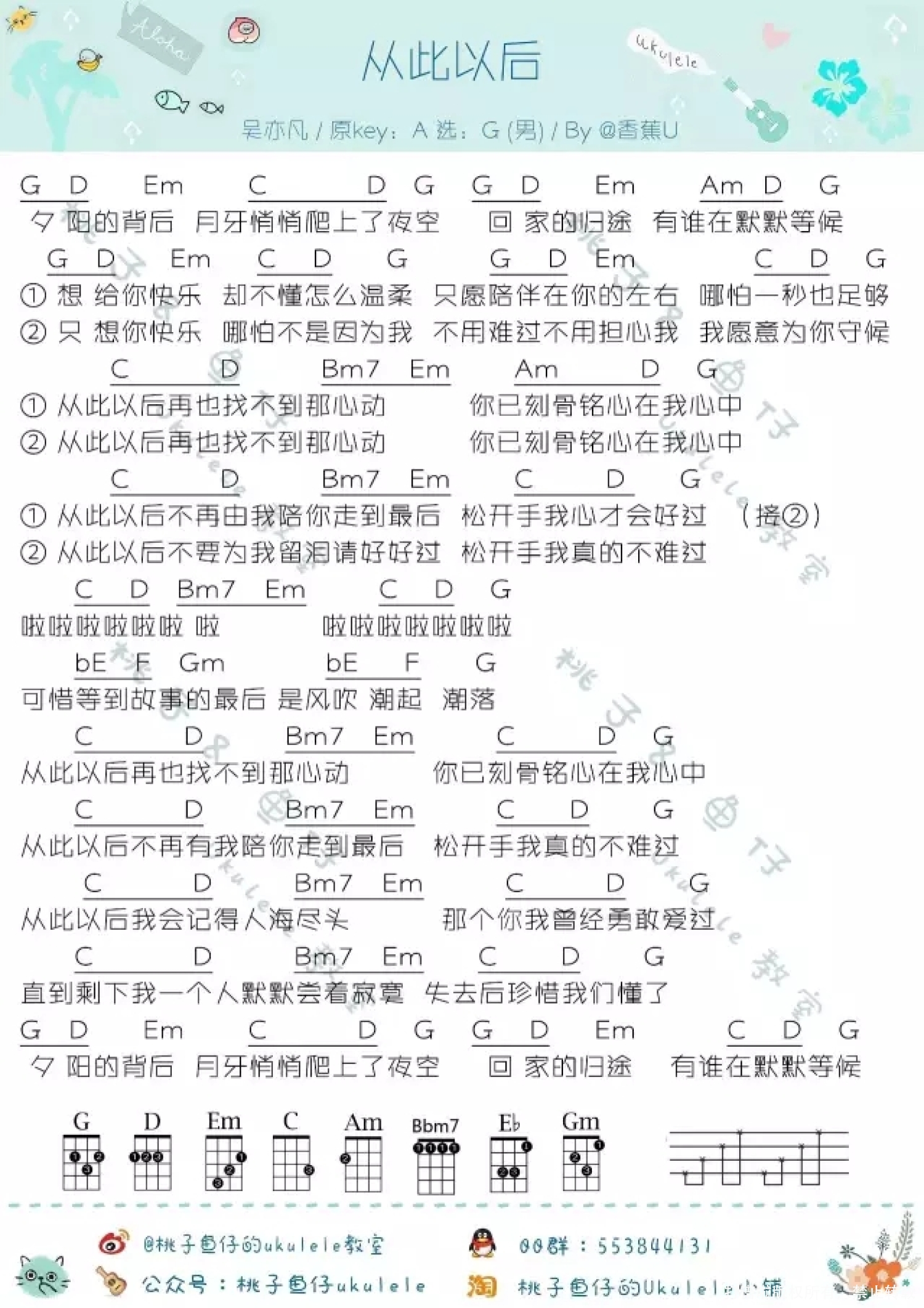 曲谱介绍: 吴亦凡《从此以后》_G调尤克里里谱_男生版