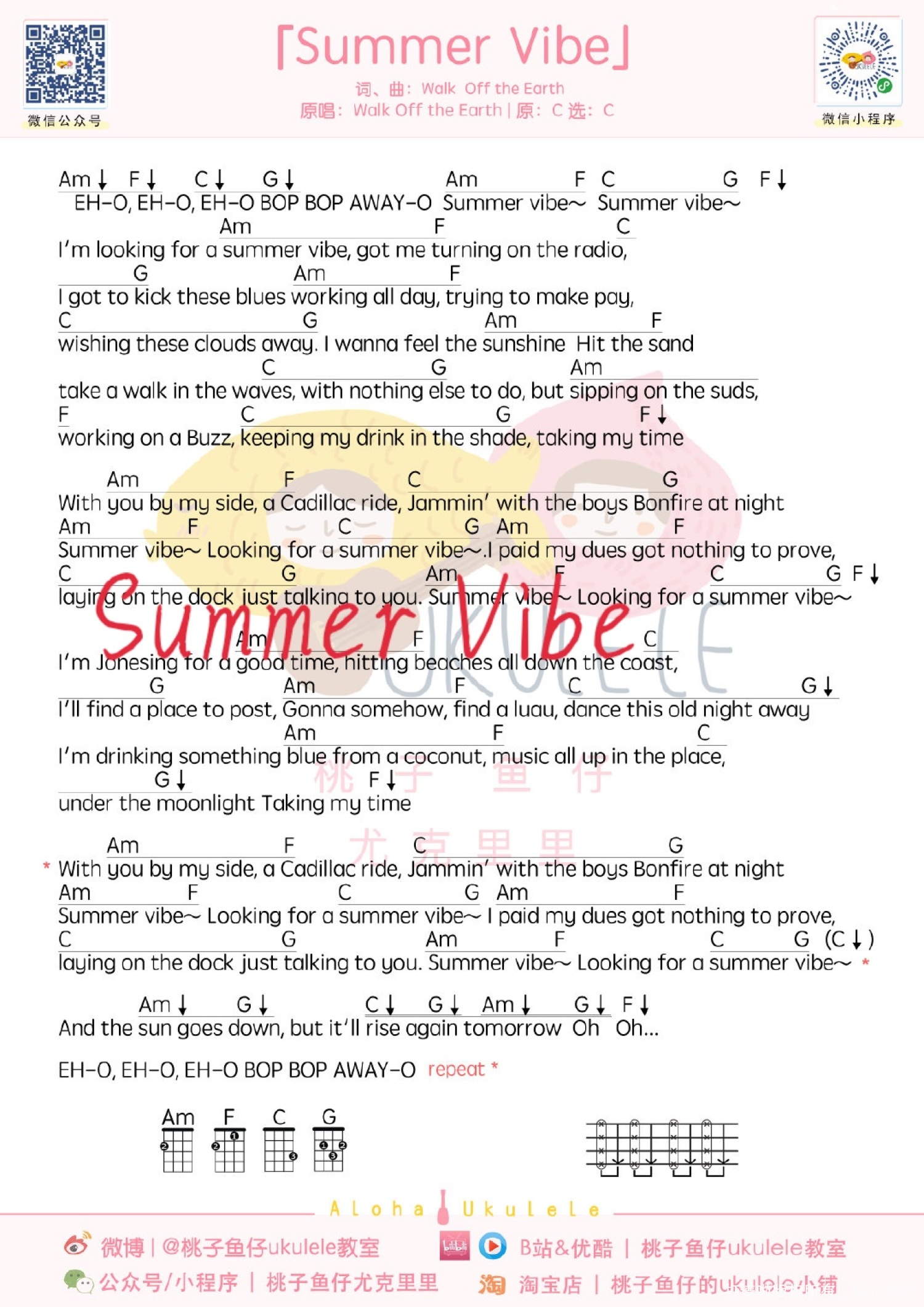 曲谱介绍: Walk off the earth《Summer Vibe》_C调尤克里里谱