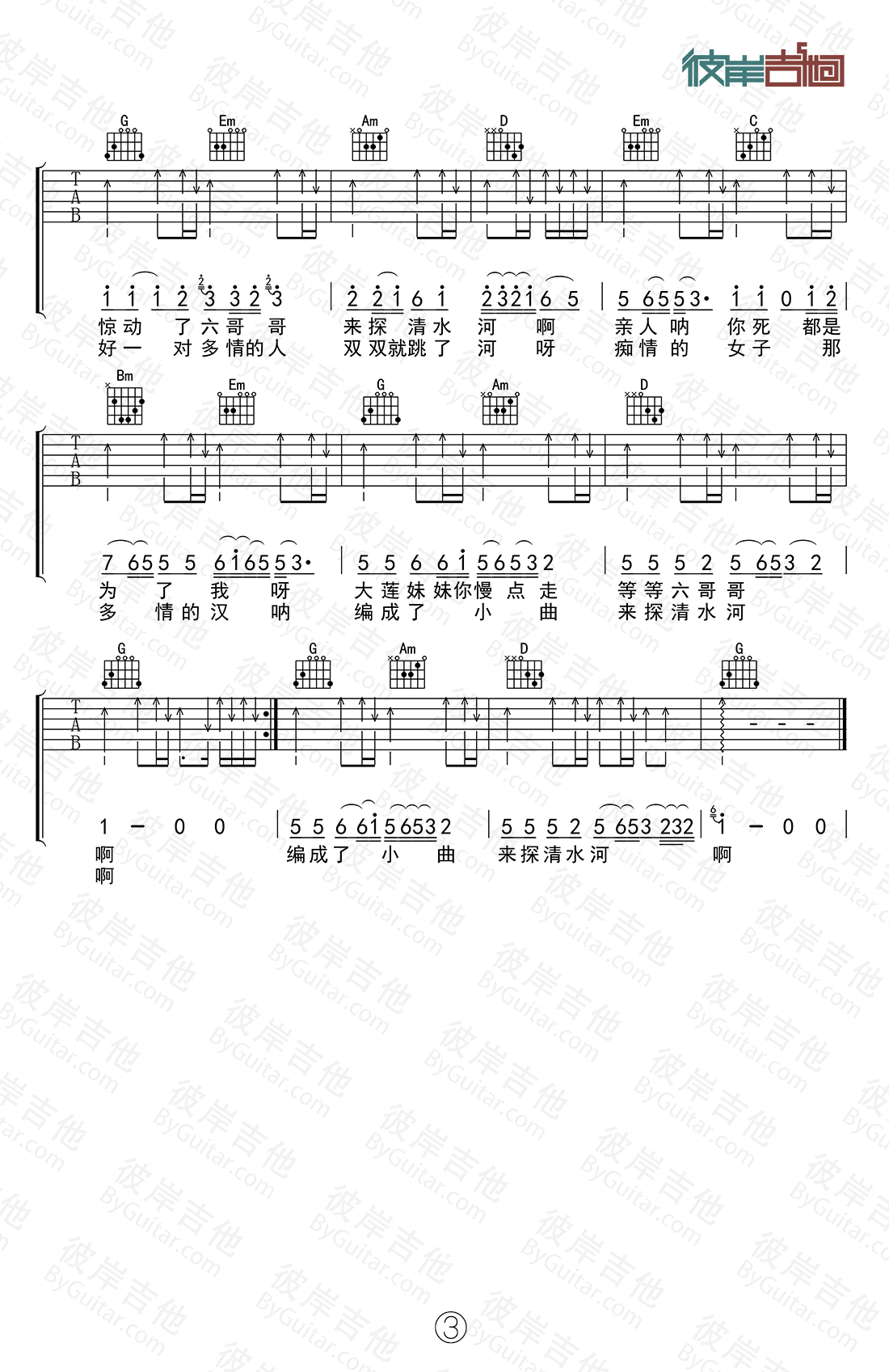当前位置:琴谱网>吉他弹唱>探清水河