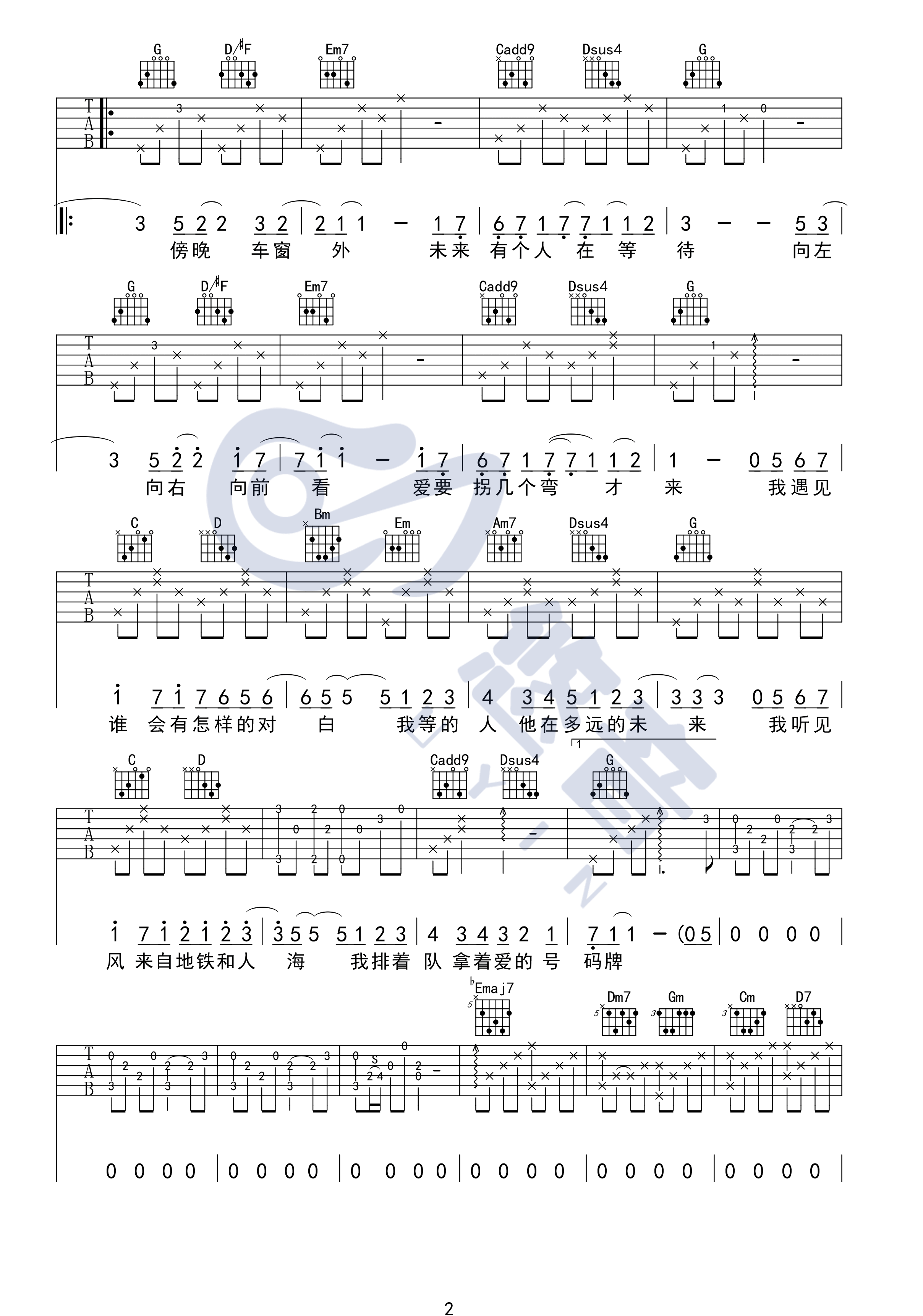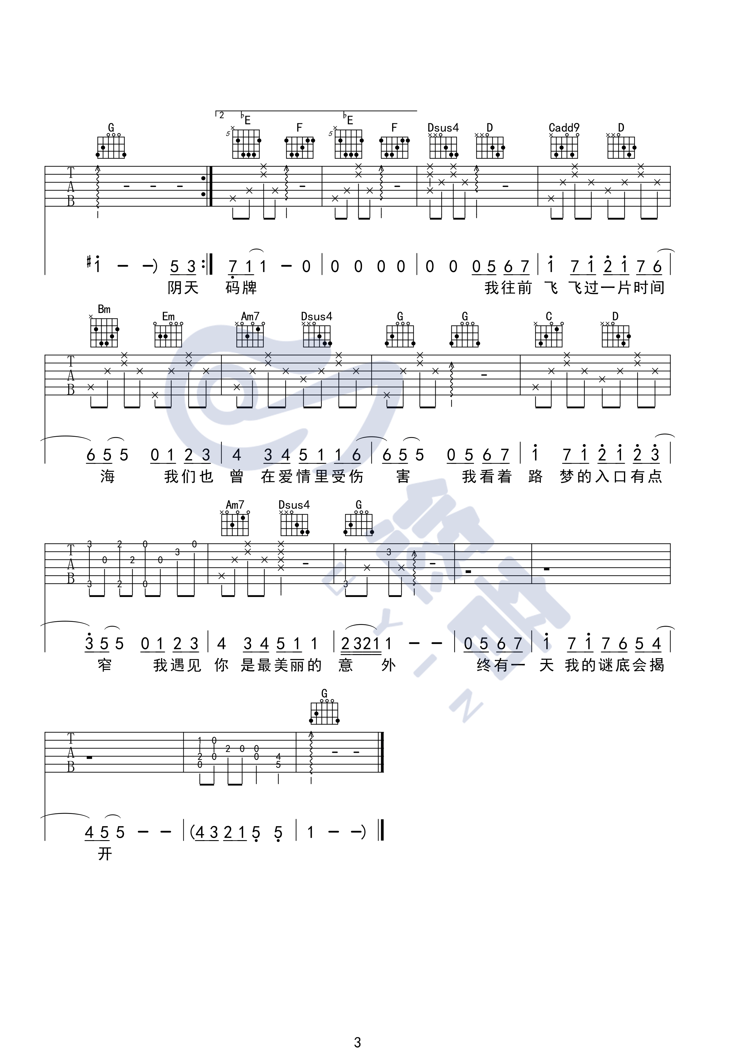 当前位置:琴谱网>吉他弹唱>遇见